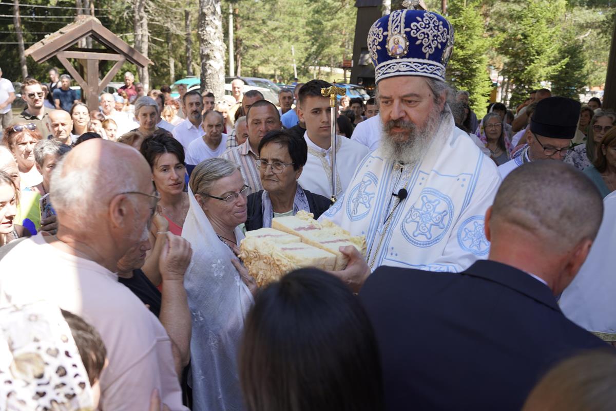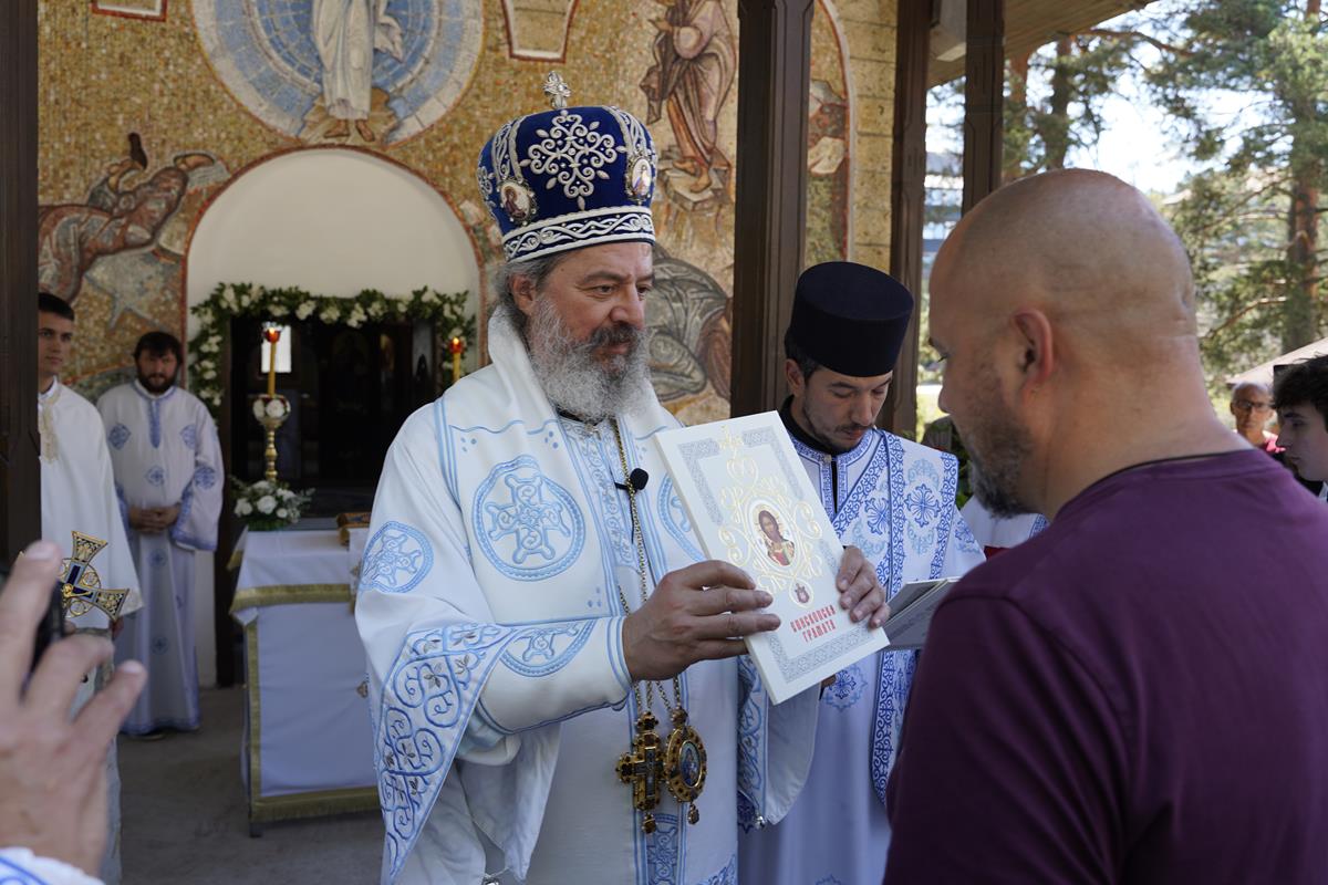 – Данас овај дивни храм, као и лепо време које имамо, указују на лепоту твари, лепоту природе, али исто тако наговештава пуноту лепоте небеског Јерусалима у коме ћемо се сви сабрати и живети, ако Бог да, довека у љубави и радости у Христу Господу- поручио је Владика Исихије, благодарећи свима који доприносе животу заједнице при храму на Дивчибарама.