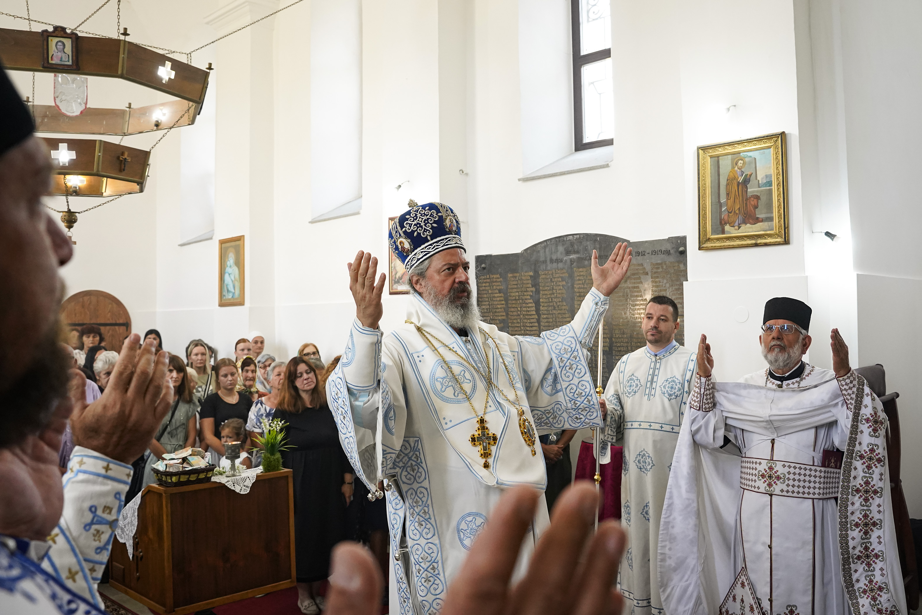 – Кад је изражена смутња, онда удвостручимо молитву да ближњег видимо као брата и сестру, а никада као непријатеља. На којој год да смо страни, морамо бити људи, како је богомудро говорио наш Свети Патријарх Павле и као што нас данас учи Патријарх Порфирије- да остваримо мир у заједници љубави. Никакав утицај на то не може да има политичко опредељење. Свако је позван да буде Син Божји, чак и они који нису крштени и који су атеисти. И они су деца Божја и имају у себи, хтели или не, имају боголику природу- закључио је Владика Исихије своје обраћање духовној деци максимама омиљеног српског првојерарха и данашњег столоватеља у трону Светог Саве.