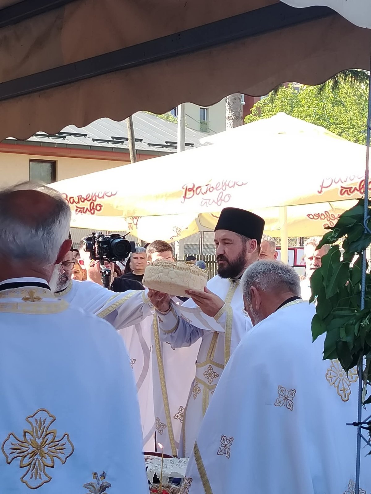 Након Свете Литургије, служитељи су преломили колач са надлежним паросима, свештеницима Игором Илићем и Далибором Чкојићем, домаћинима славе и свима сабранима.