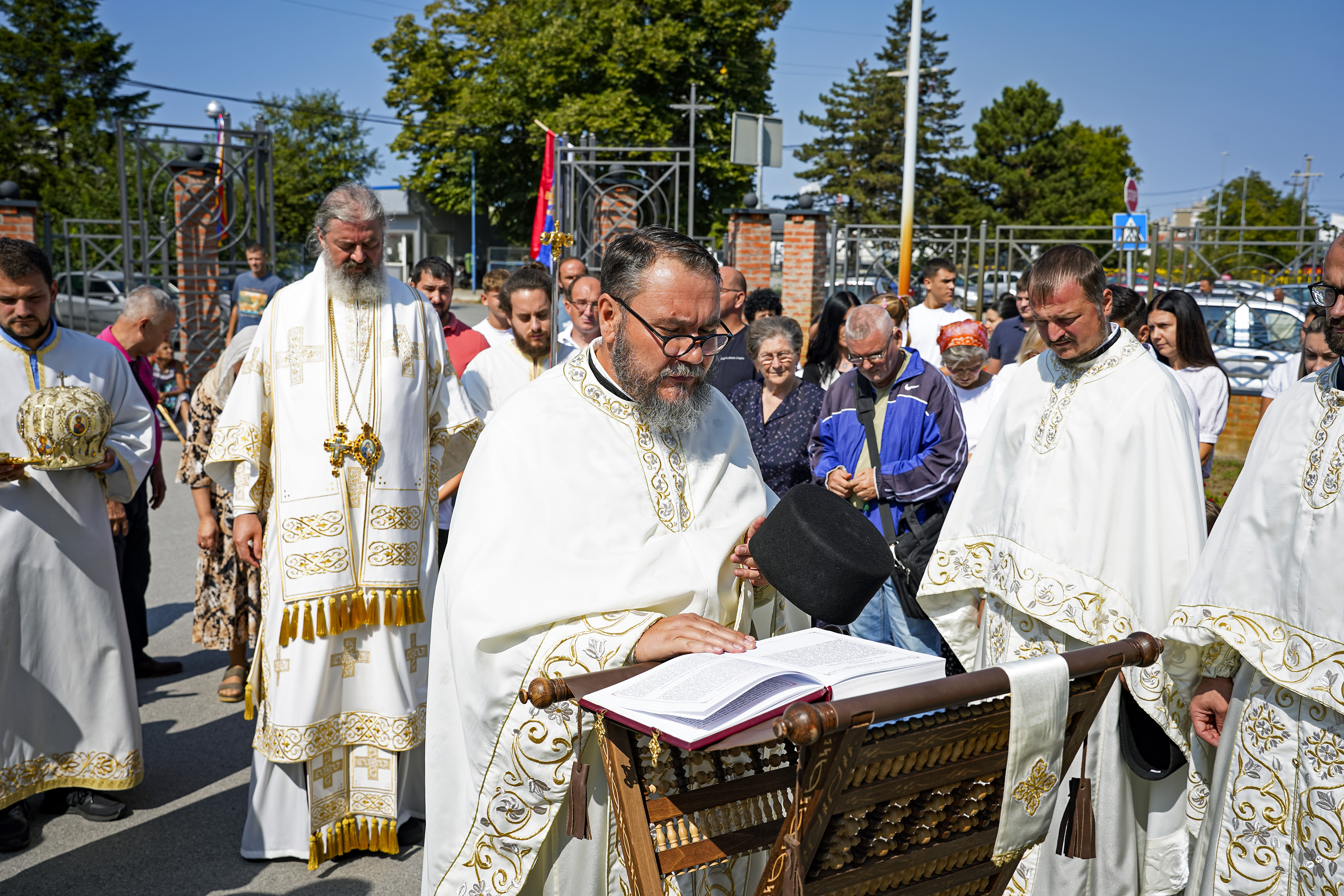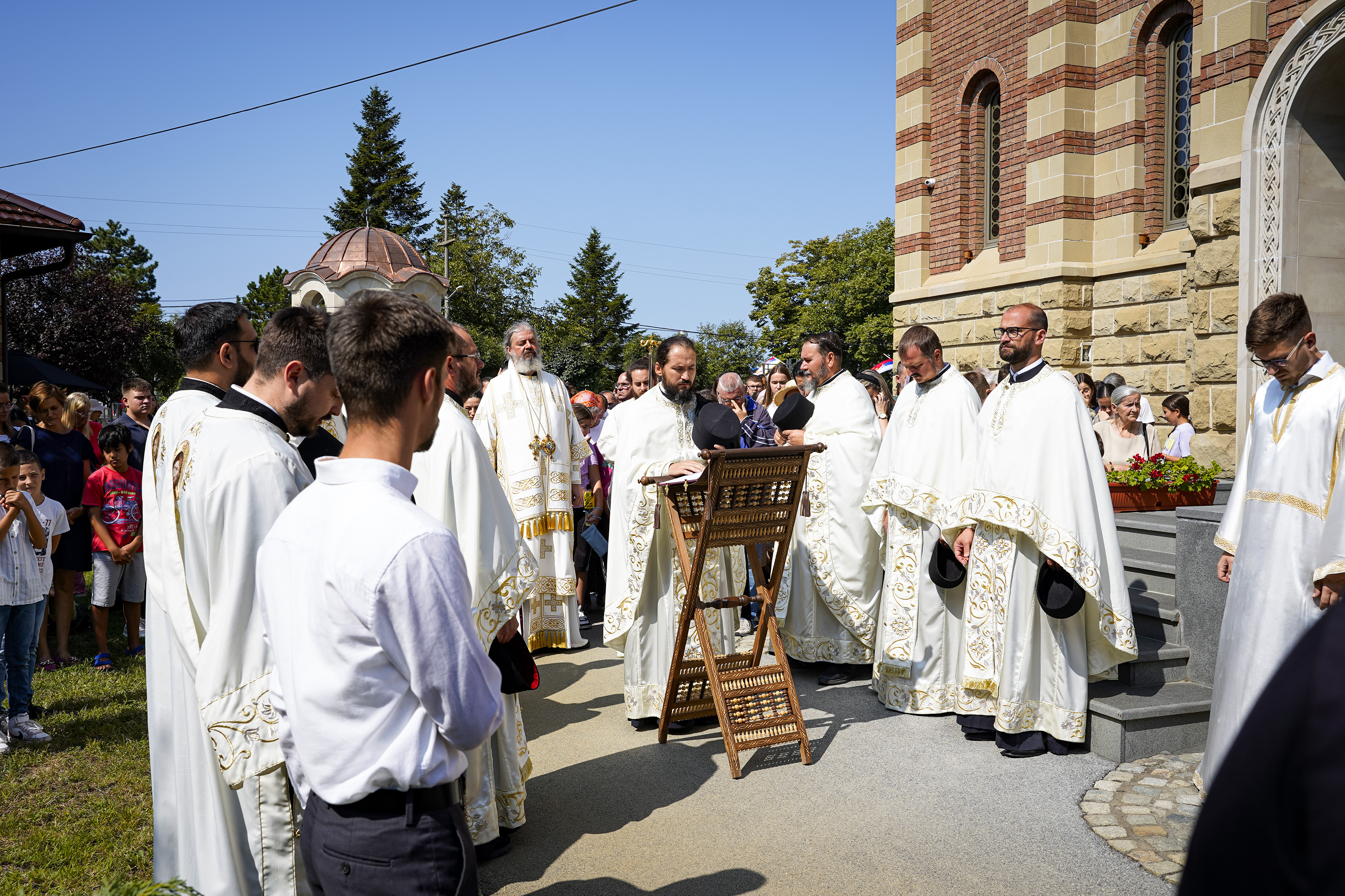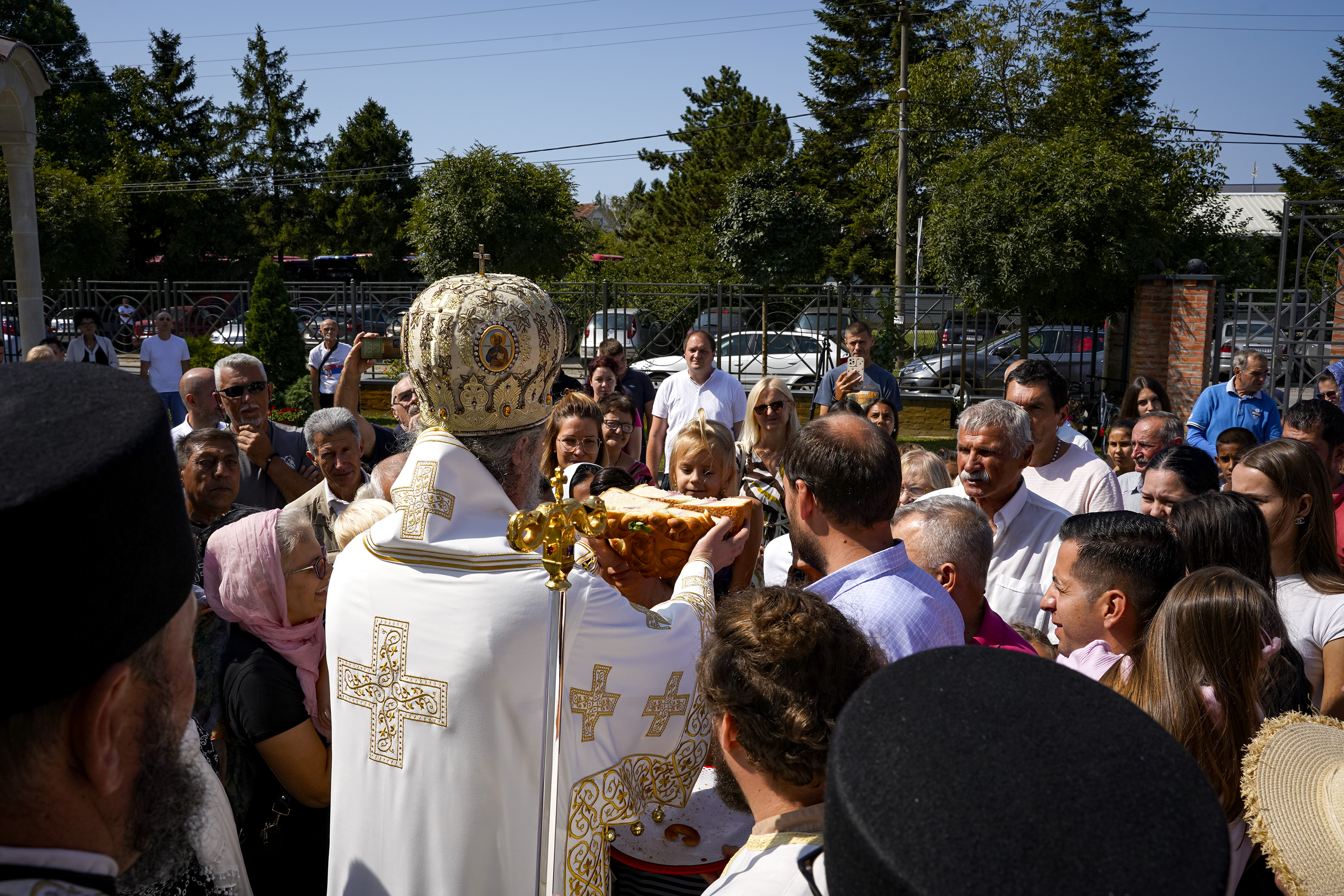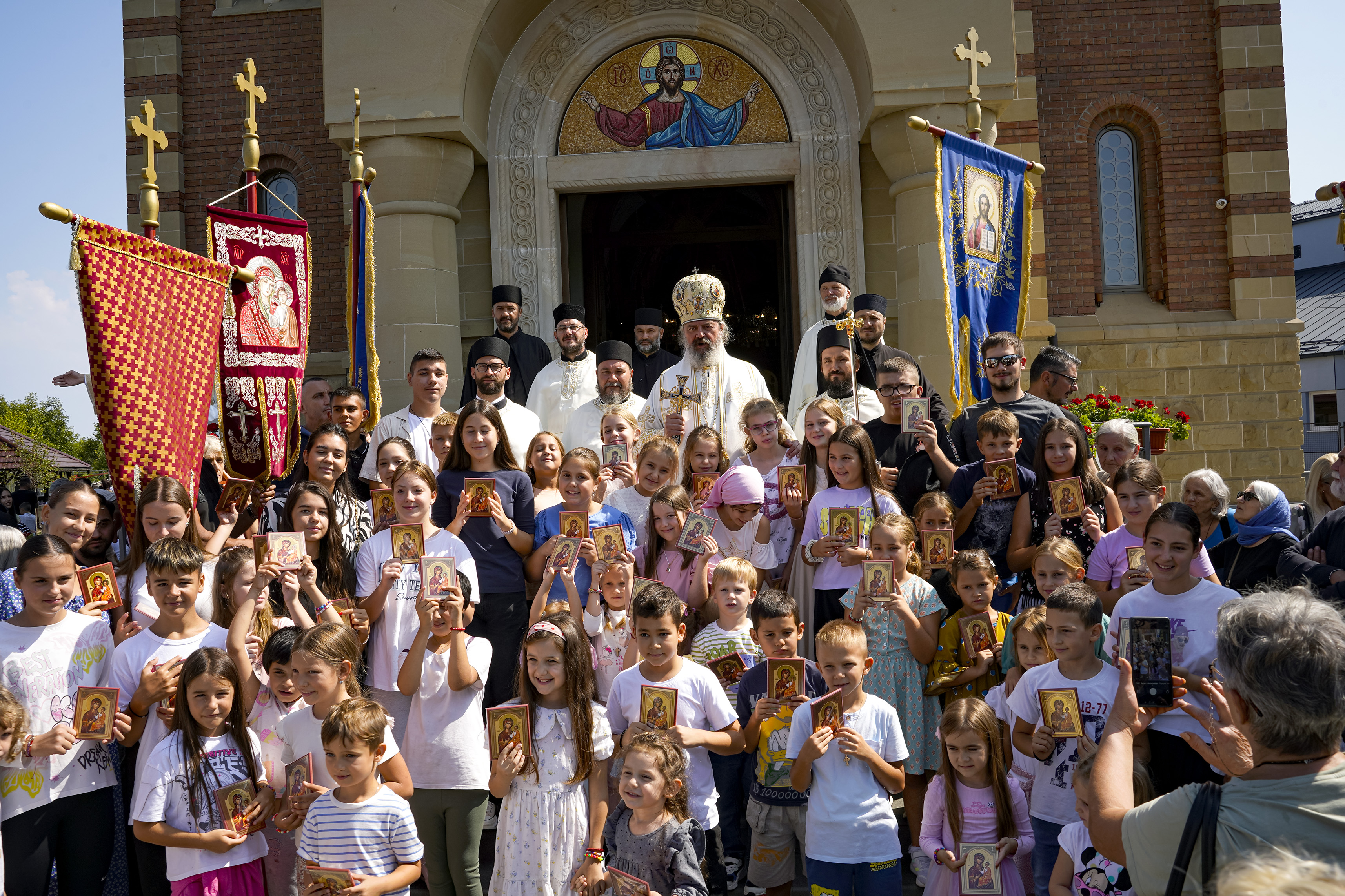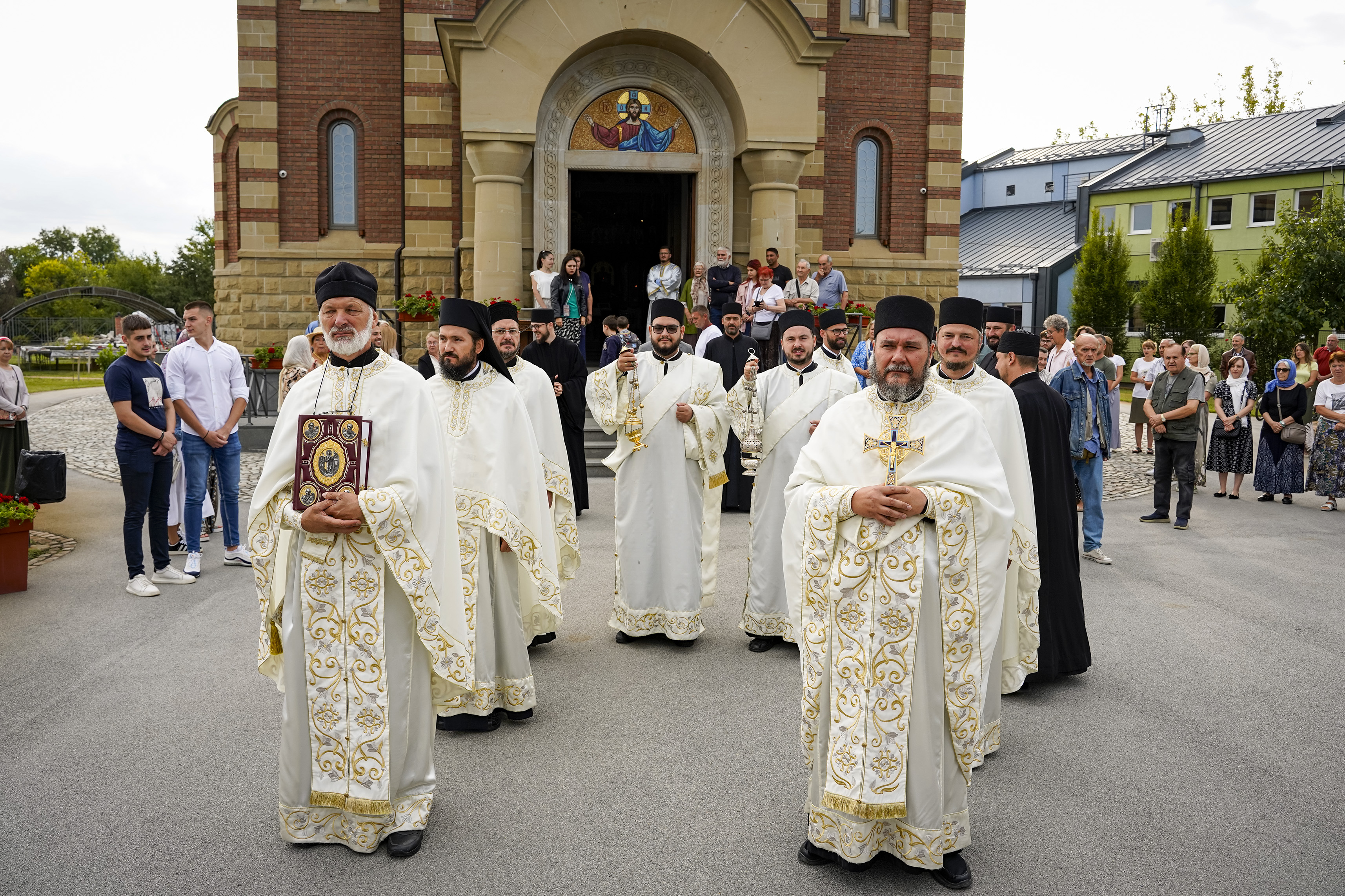 Након Свете Литургије је начињен литијски опход и преломљен славски колач. Честитајући славу старешини Храма Сабора Српских светитеља, протојереју Гордону Василићу, домаћину славе Николи Филиповићу и његовој породици, Владика Исихије је благосиљао парохијане и све које је прослава празника са разних страна довела у ову посавску светињу. Сабрање је заокружено молебном за успешан почетак школске године, коме је присуствовао велики број ђака и студената. Владика Исихије је покропио школарце освећеном водицом и даривао их иконицама Пресвете Богородице, уз пастирску поуку да у школи негују заједништво у љубави са другарима, да се моле, покажу доброту и љубазност, чинећи добра дела са љубављу.