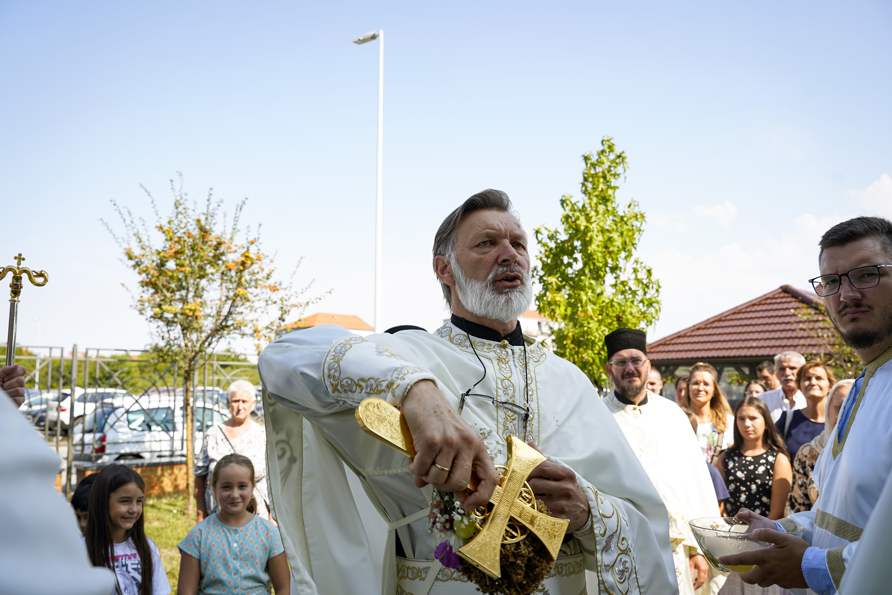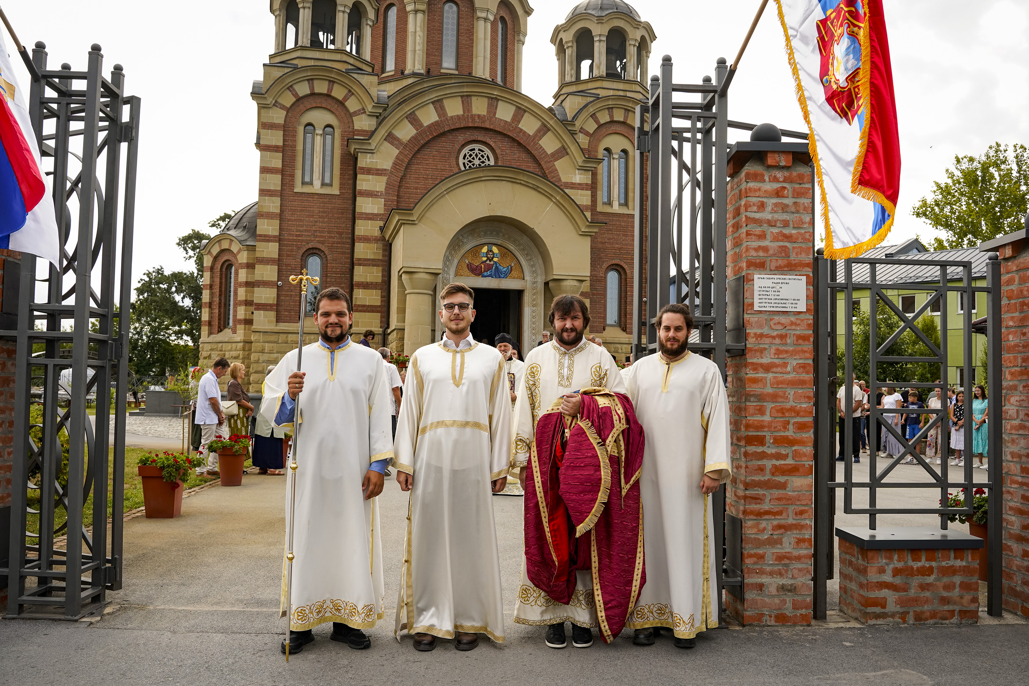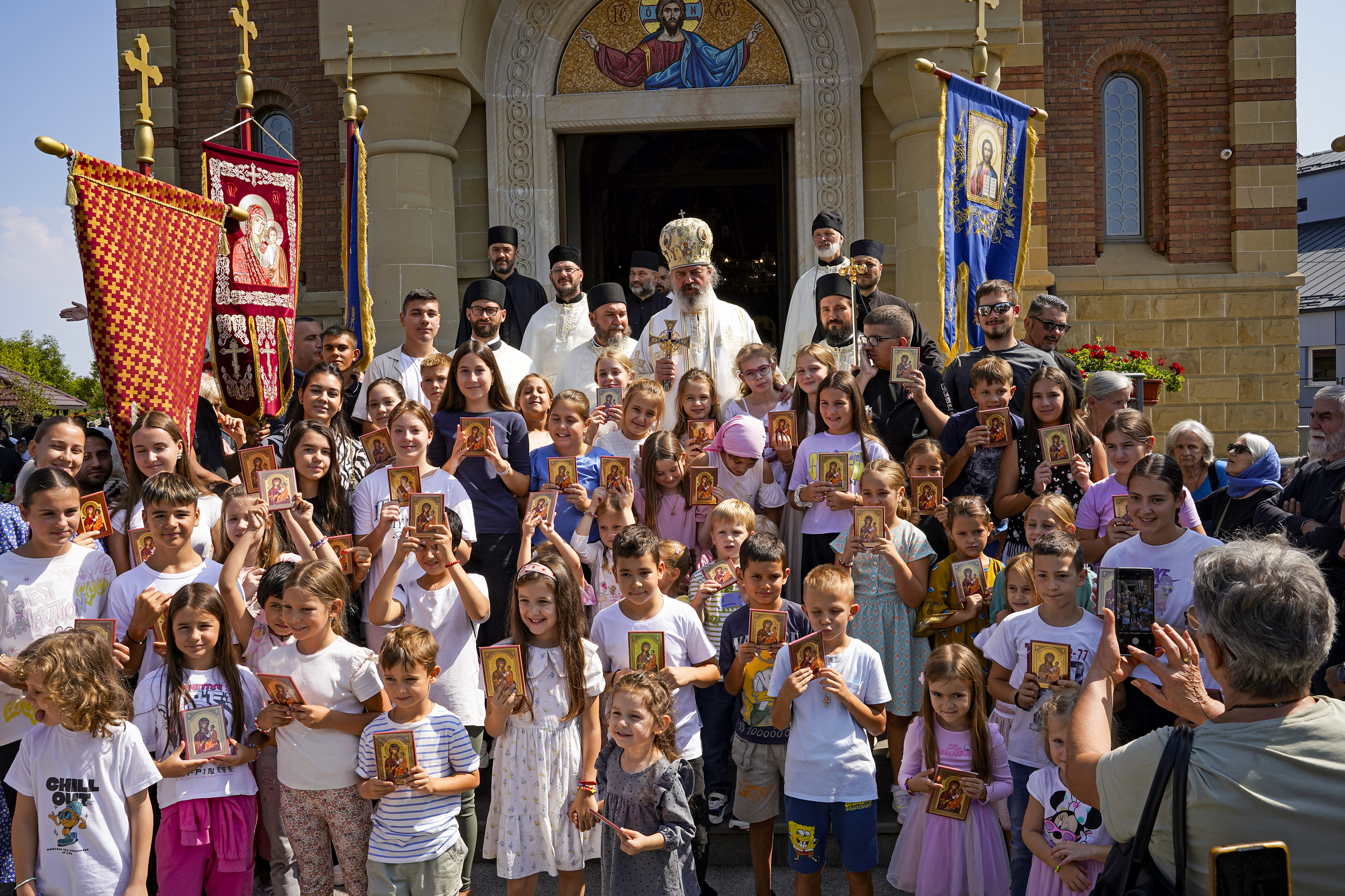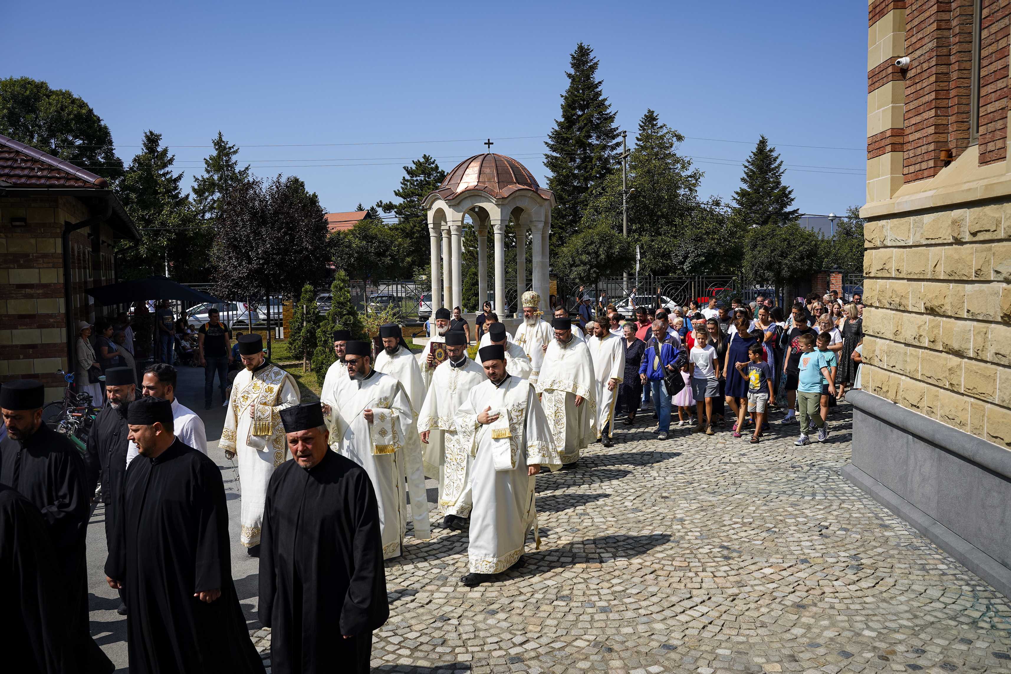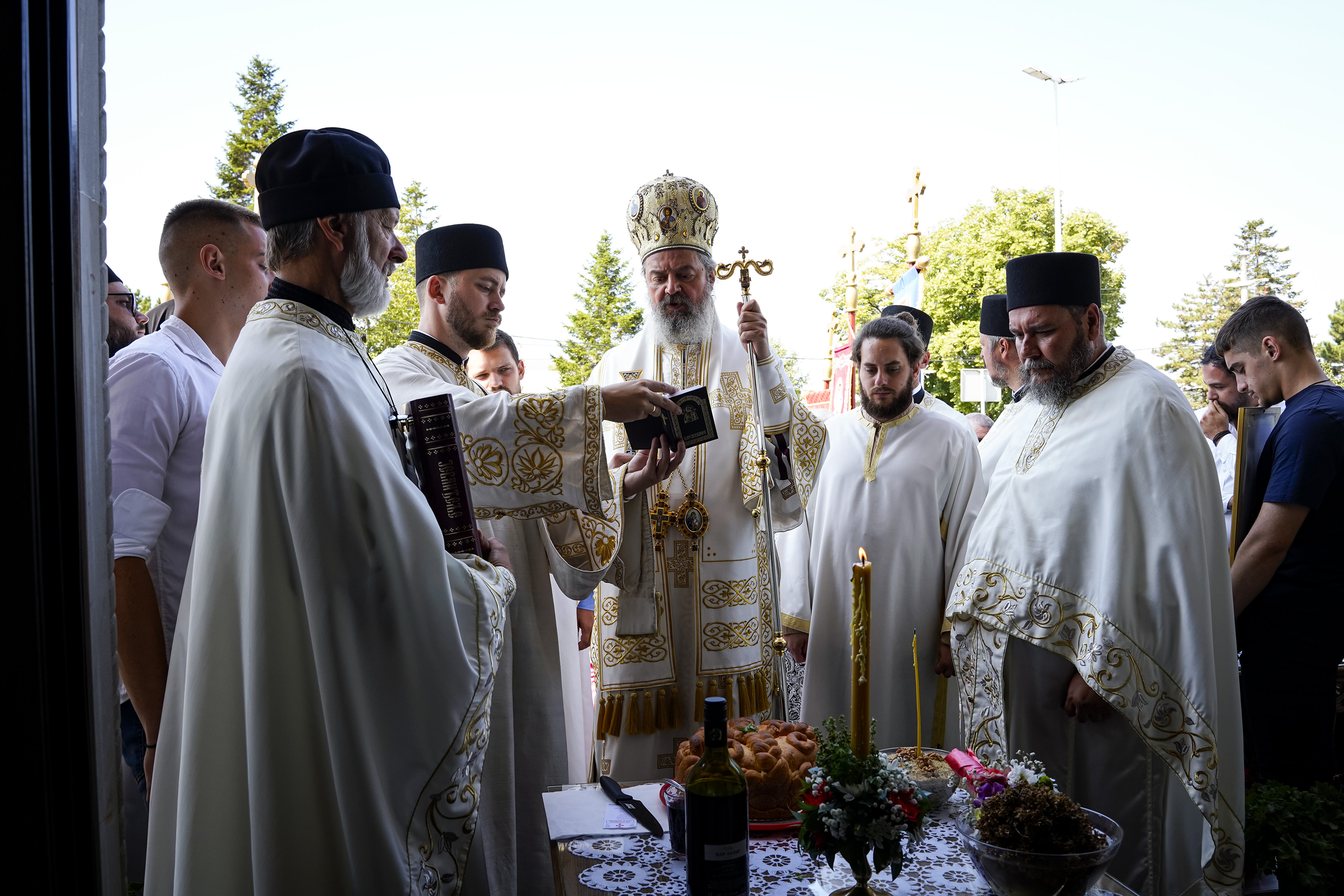 Након Свете Литургије је начињен литијски опход и преломљен славски колач. Честитајући славу старешини Храма Сабора Српских светитеља, протојереју Гордону Василићу, домаћину славе Николи Филиповићу и његовој породици, Владика Исихије је благосиљао парохијане и све које је прослава празника са разних страна довела у ову посавску светињу. Сабрање је заокружено молебном за успешан почетак школске године, коме је присуствовао велики број ђака и студената. Владика Исихије је покропио школарце освећеном водицом и даривао их иконицама Пресвете Богородице, уз пастирску поуку да у школи негују заједништво у љубави са другарима, да се моле, покажу доброту и љубазност, чинећи добра дела са љубављу.