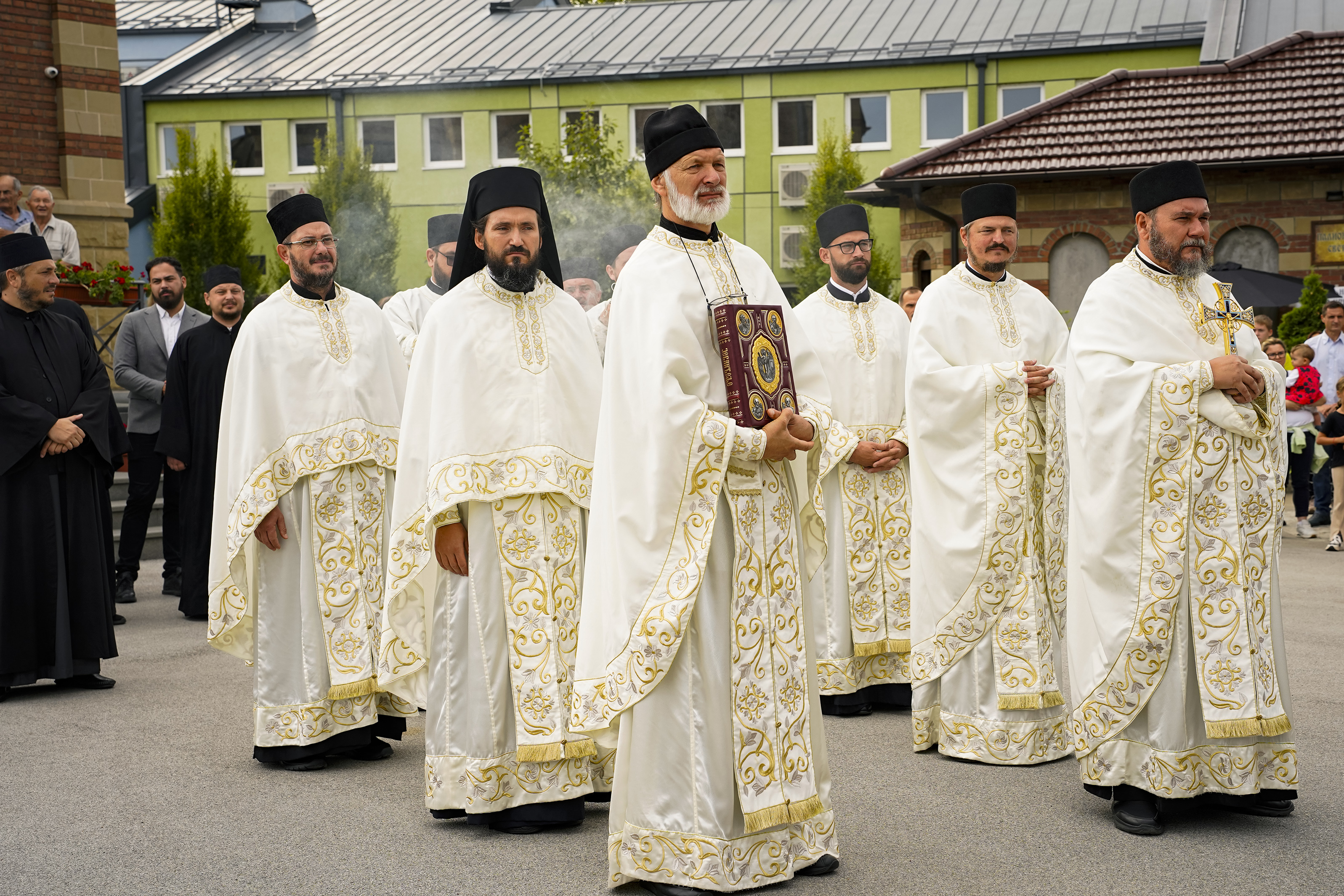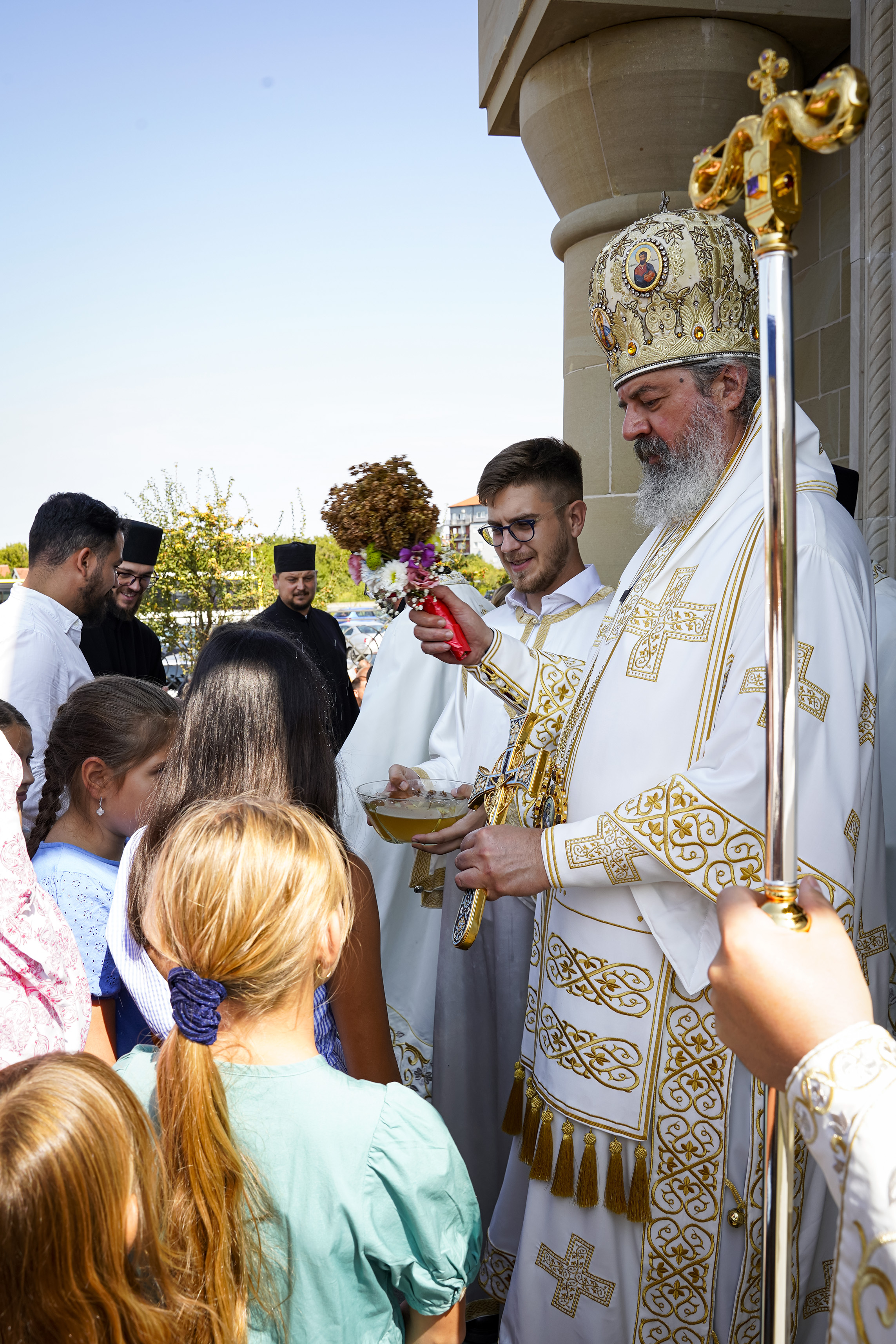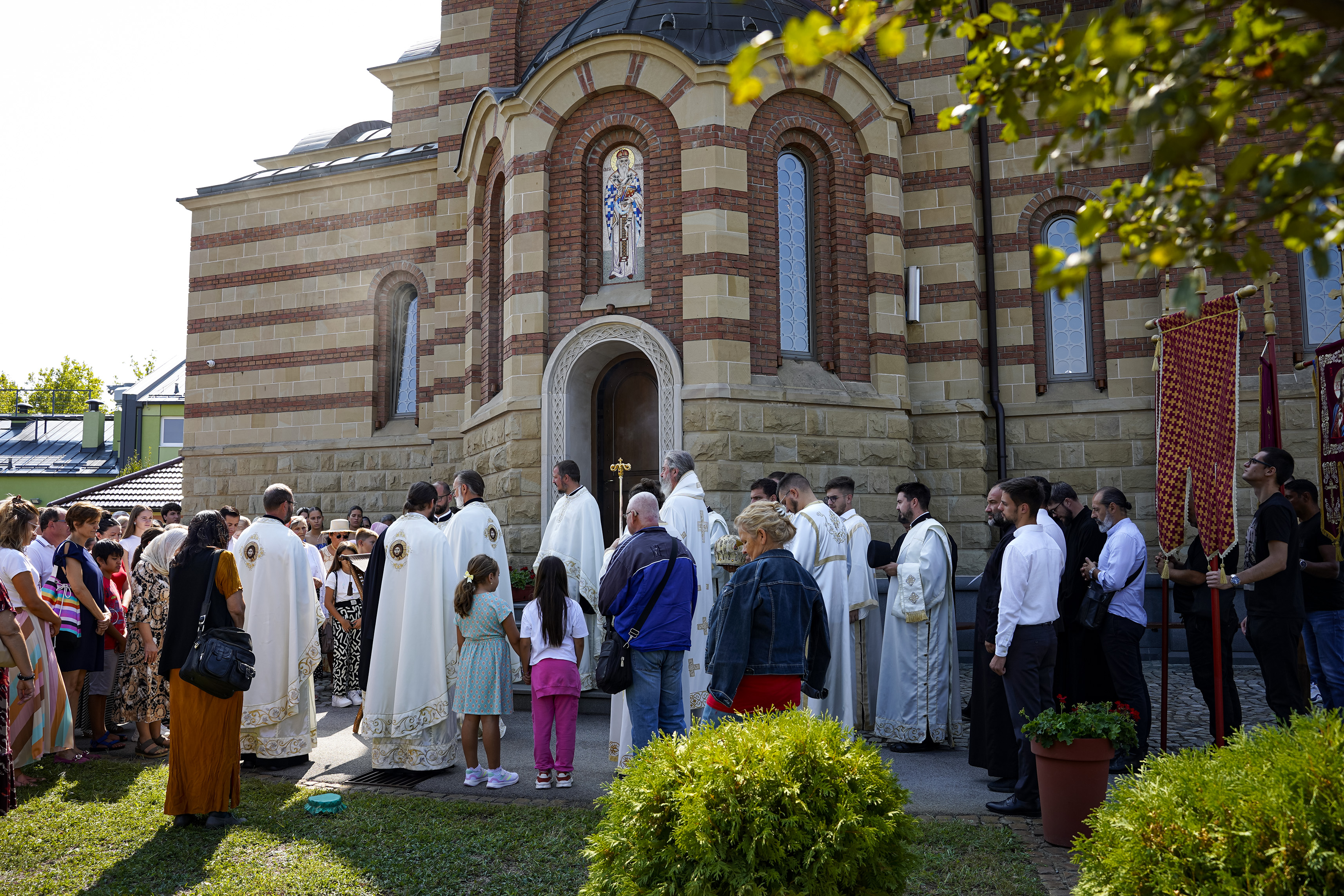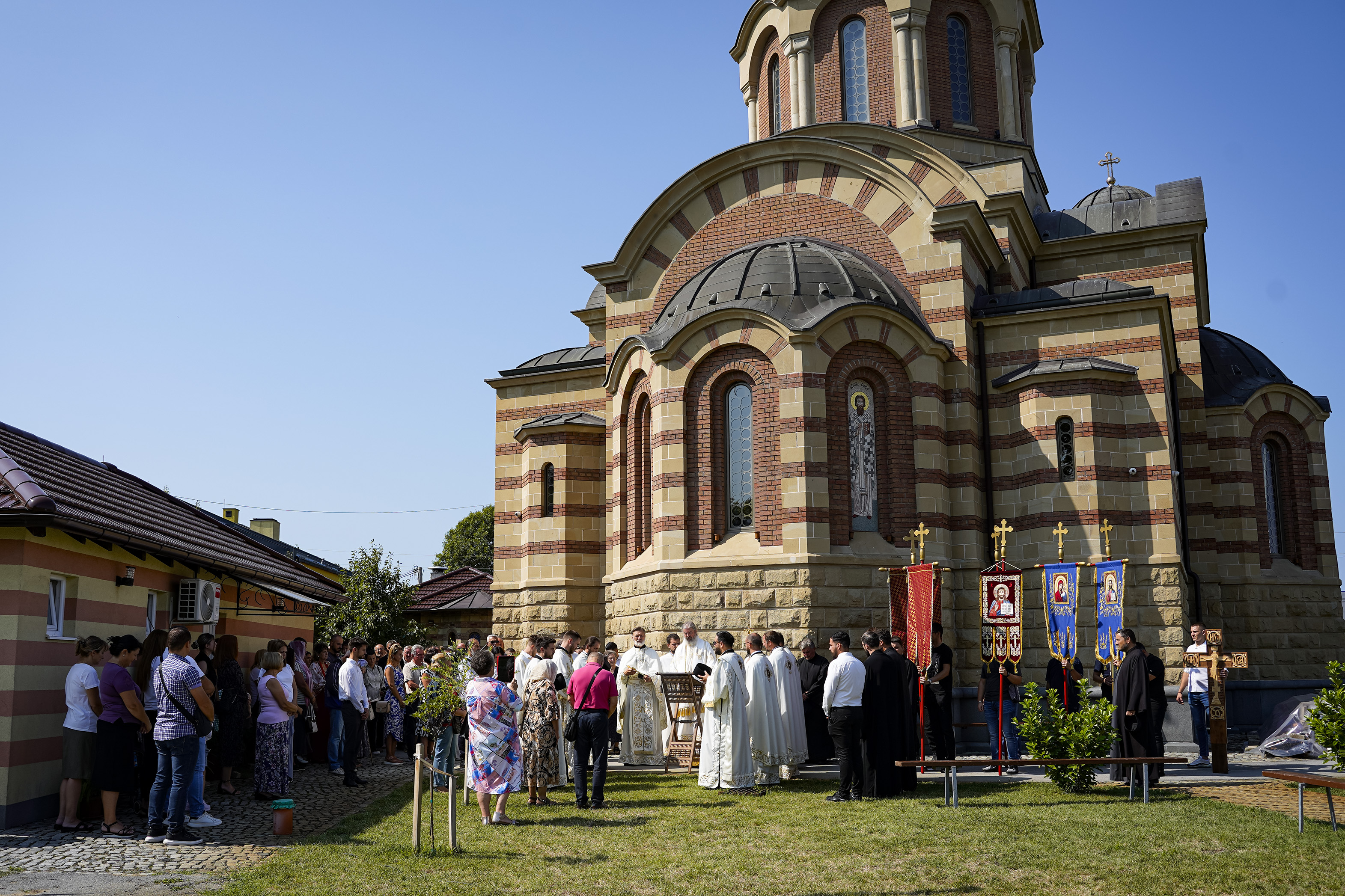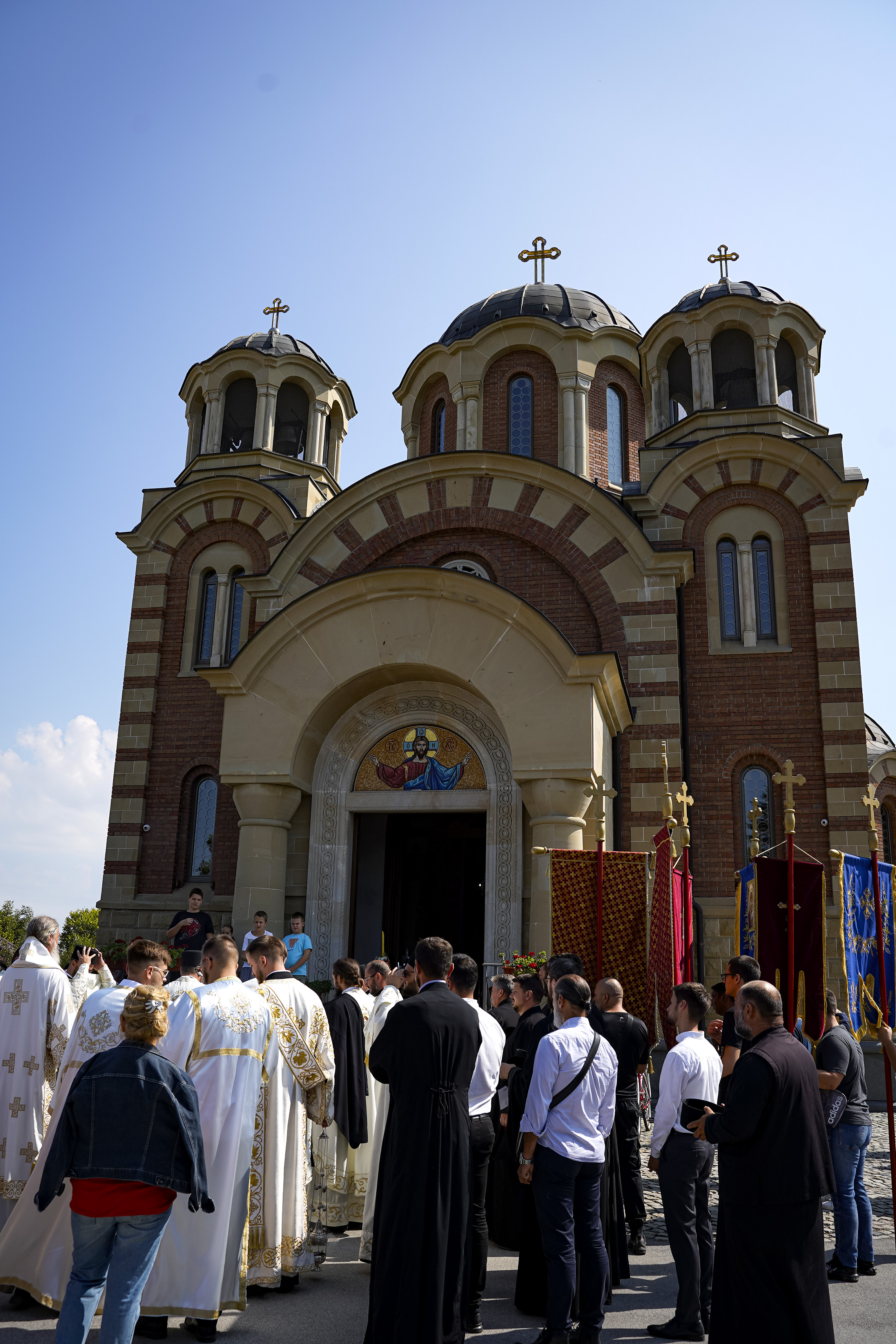 Након Свете Литургије је начињен литијски опход и преломљен славски колач. Честитајући славу старешини Храма Сабора Српских светитеља, протојереју Гордону Василићу, домаћину славе Николи Филиповићу и његовој породици, Владика Исихије је благосиљао парохијане и све које је прослава празника са разних страна довела у ову посавску светињу. Сабрање је заокружено молебном за успешан почетак школске године, коме је присуствовао велики број ђака и студената. Владика Исихије је покропио школарце освећеном водицом и даривао их иконицама Пресвете Богородице, уз пастирску поуку да у школи негују заједништво у љубави са другарима, да се моле, покажу доброту и љубазност, чинећи добра дела са љубављу.