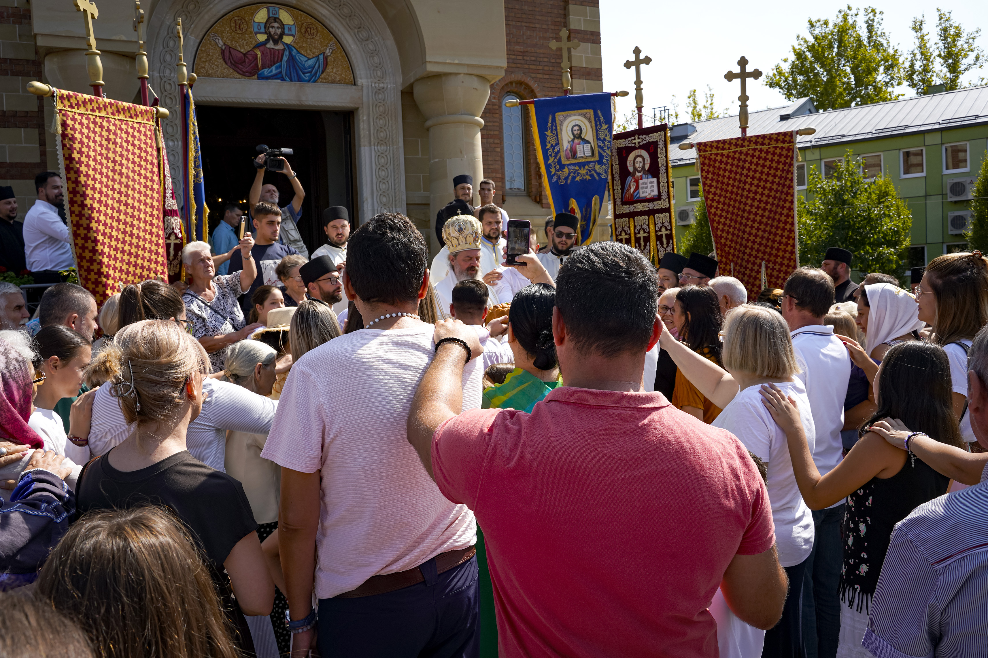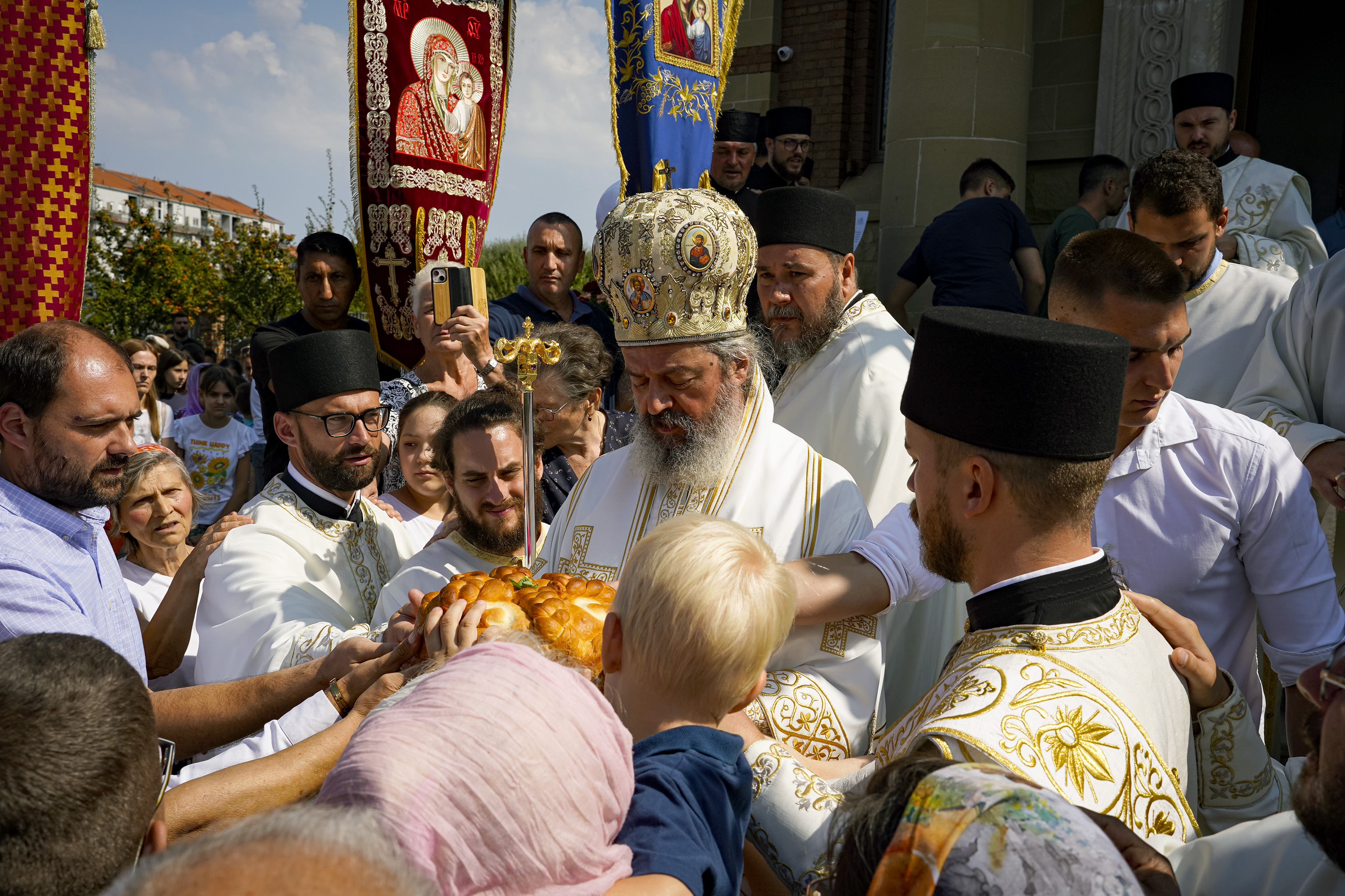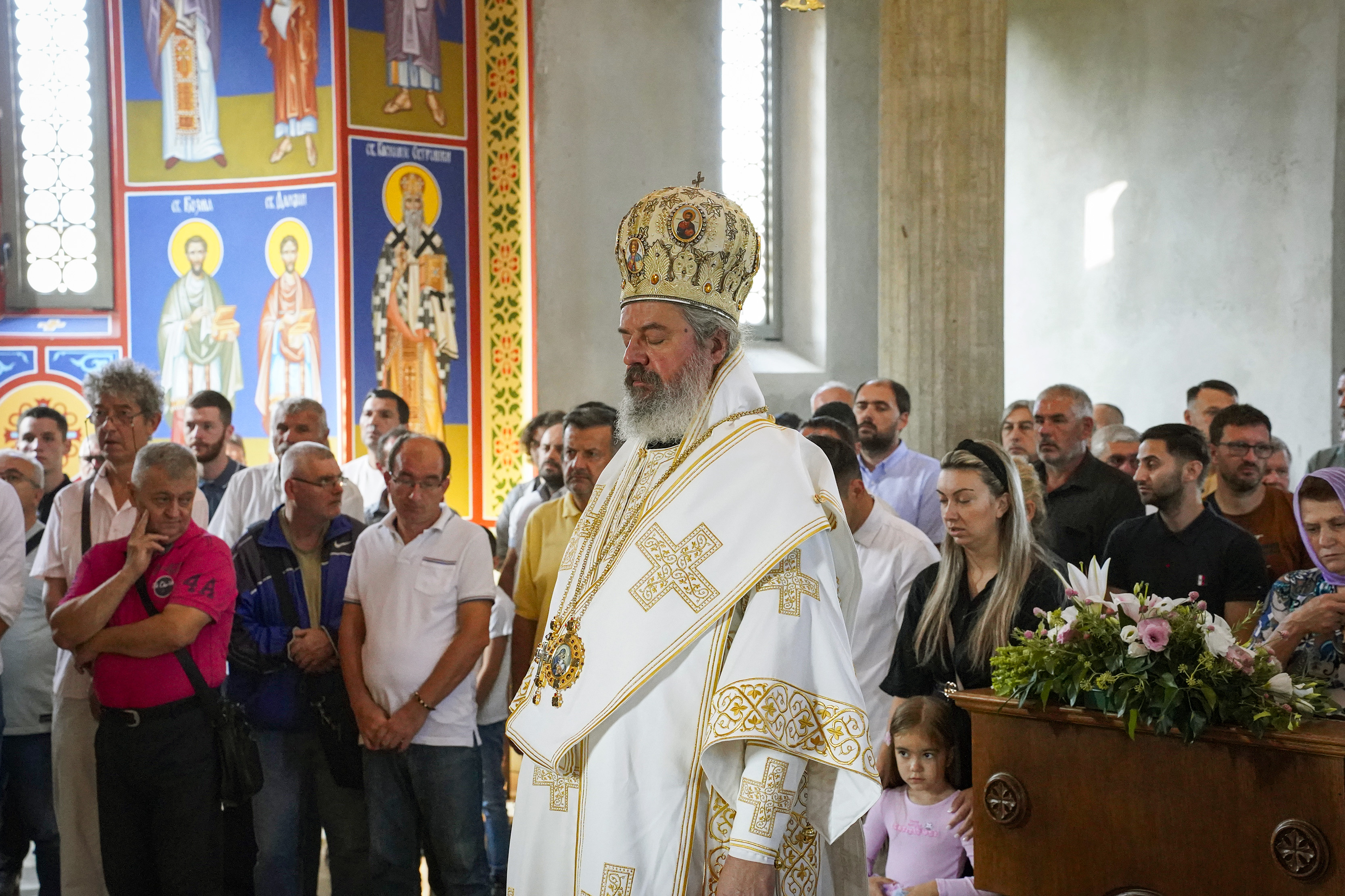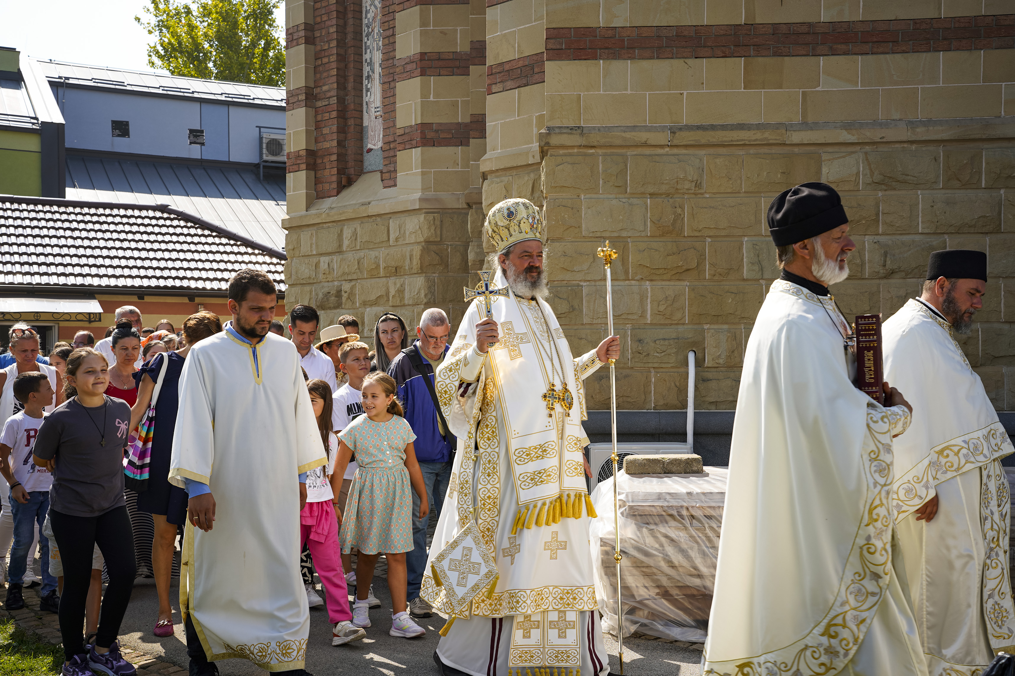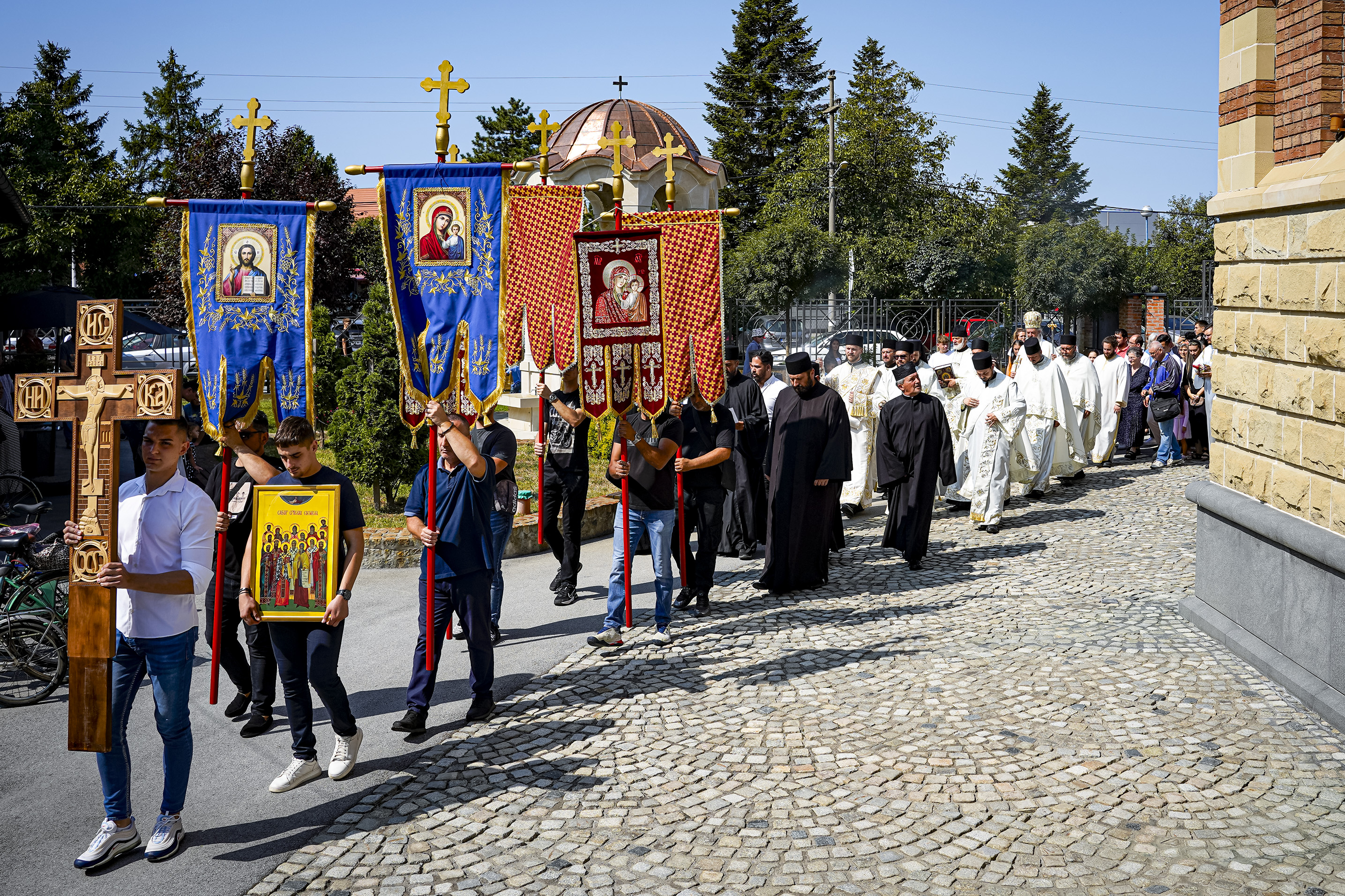 Након Свете Литургије је начињен литијски опход и преломљен славски колач. Честитајући славу старешини Храма Сабора Српских светитеља, протојереју Гордону Василићу, домаћину славе Николи Филиповићу и његовој породици, Владика Исихије је благосиљао парохијане и све које је прослава празника са разних страна довела у ову посавску светињу. Сабрање је заокружено молебном за успешан почетак школске године, коме је присуствовао велики број ђака и студената. Владика Исихије је покропио школарце освећеном водицом и даривао их иконицама Пресвете Богородице, уз пастирску поуку да у школи негују заједништво у љубави са другарима, да се моле, покажу доброту и љубазност, чинећи добра дела са љубављу.