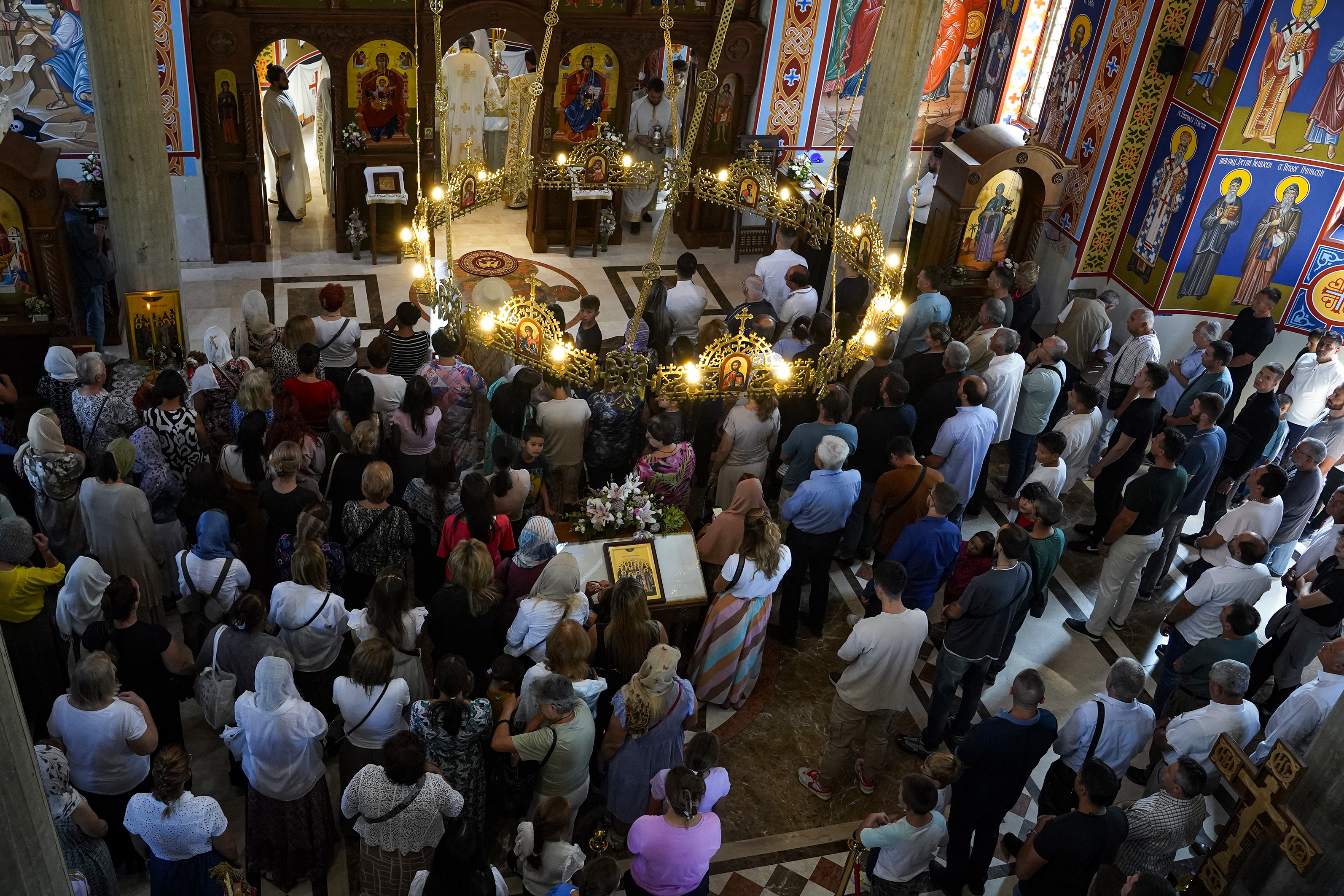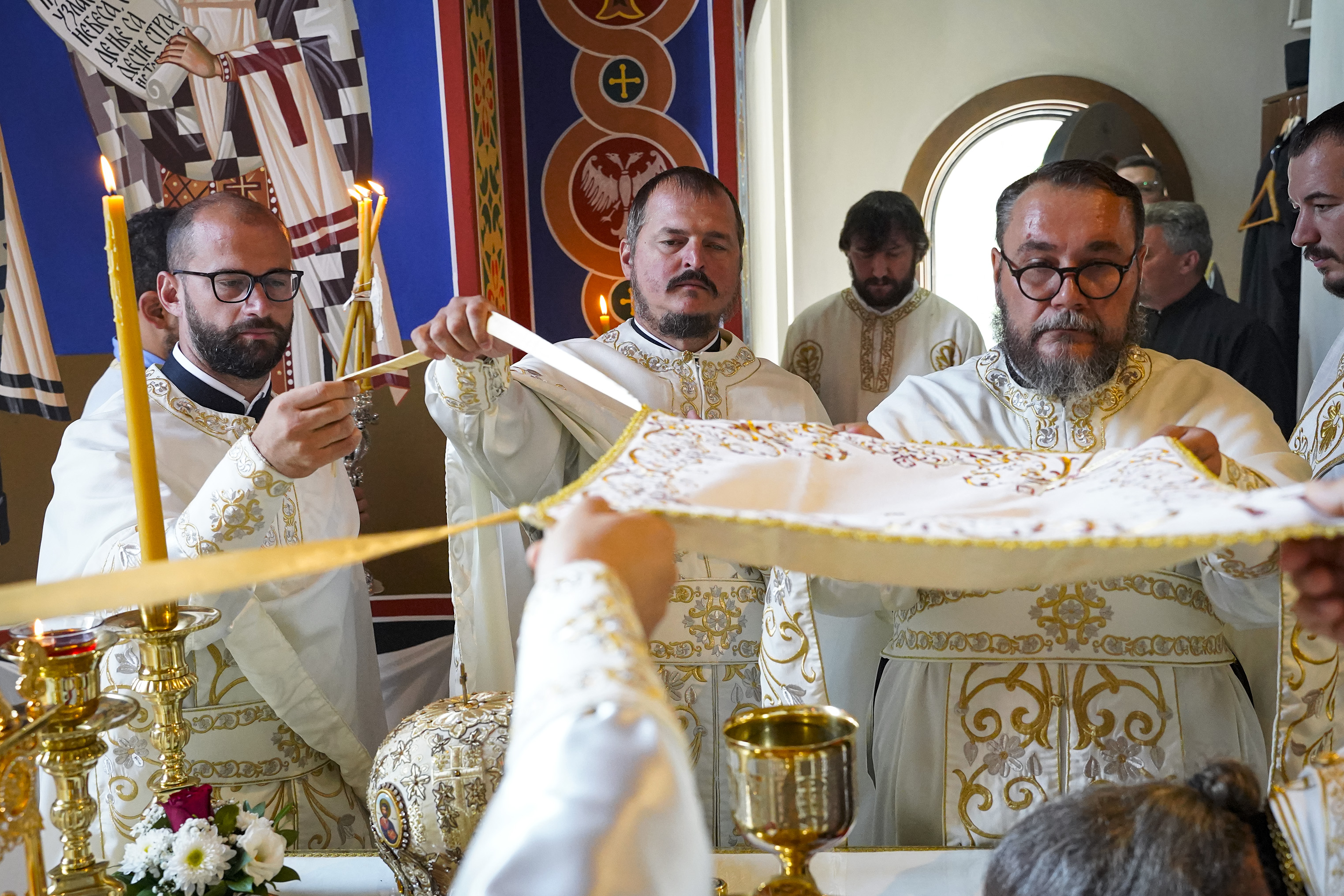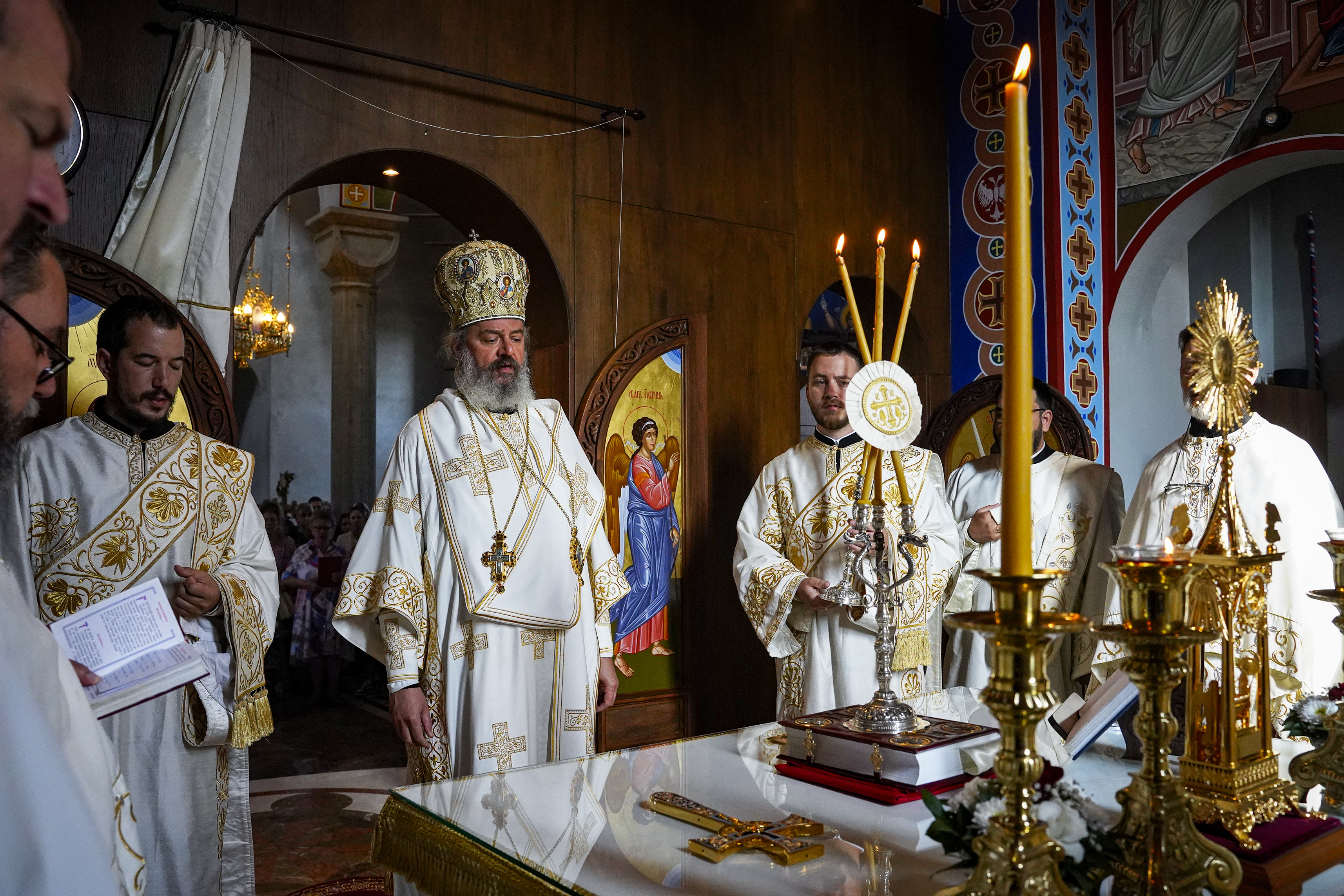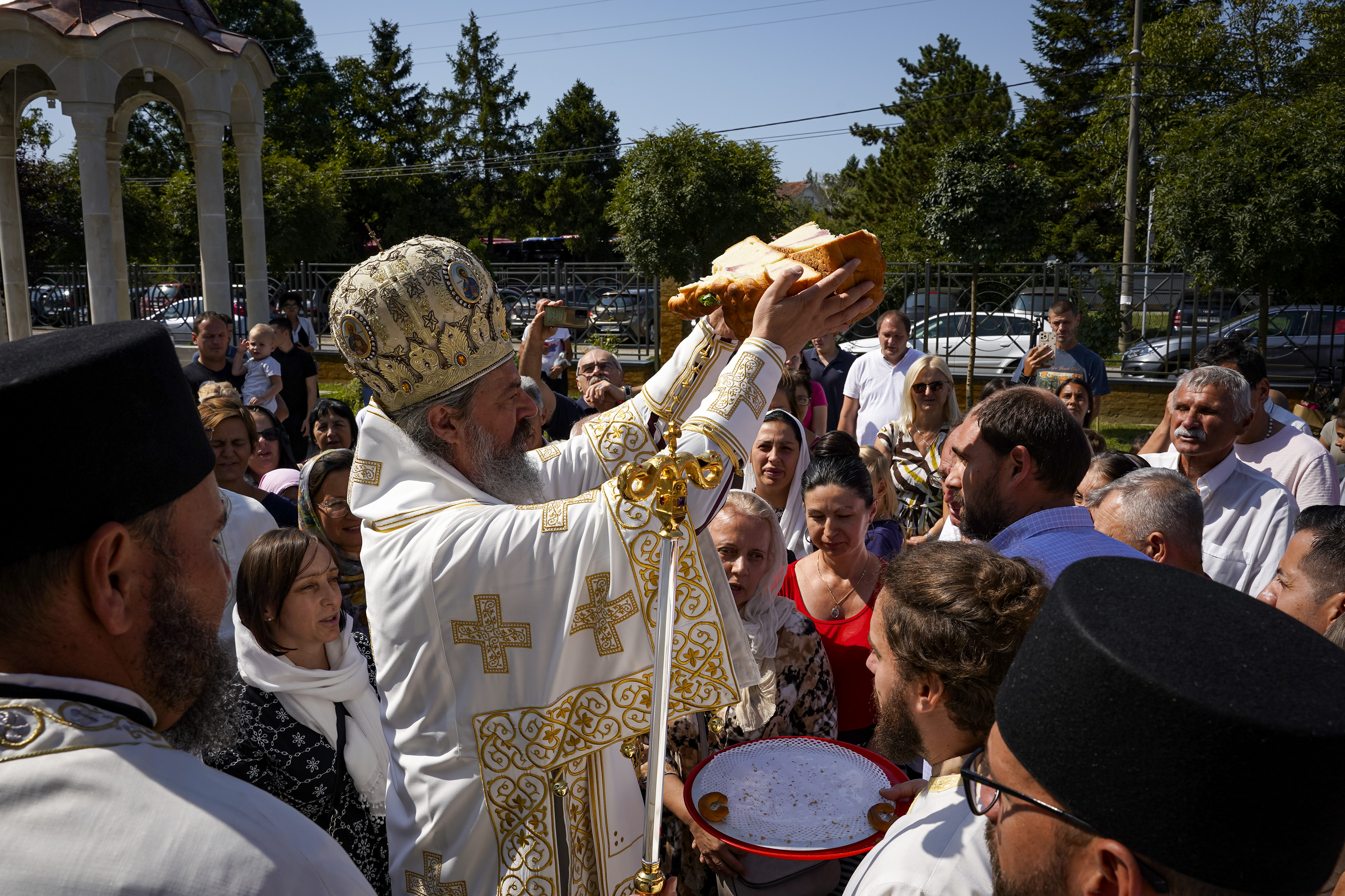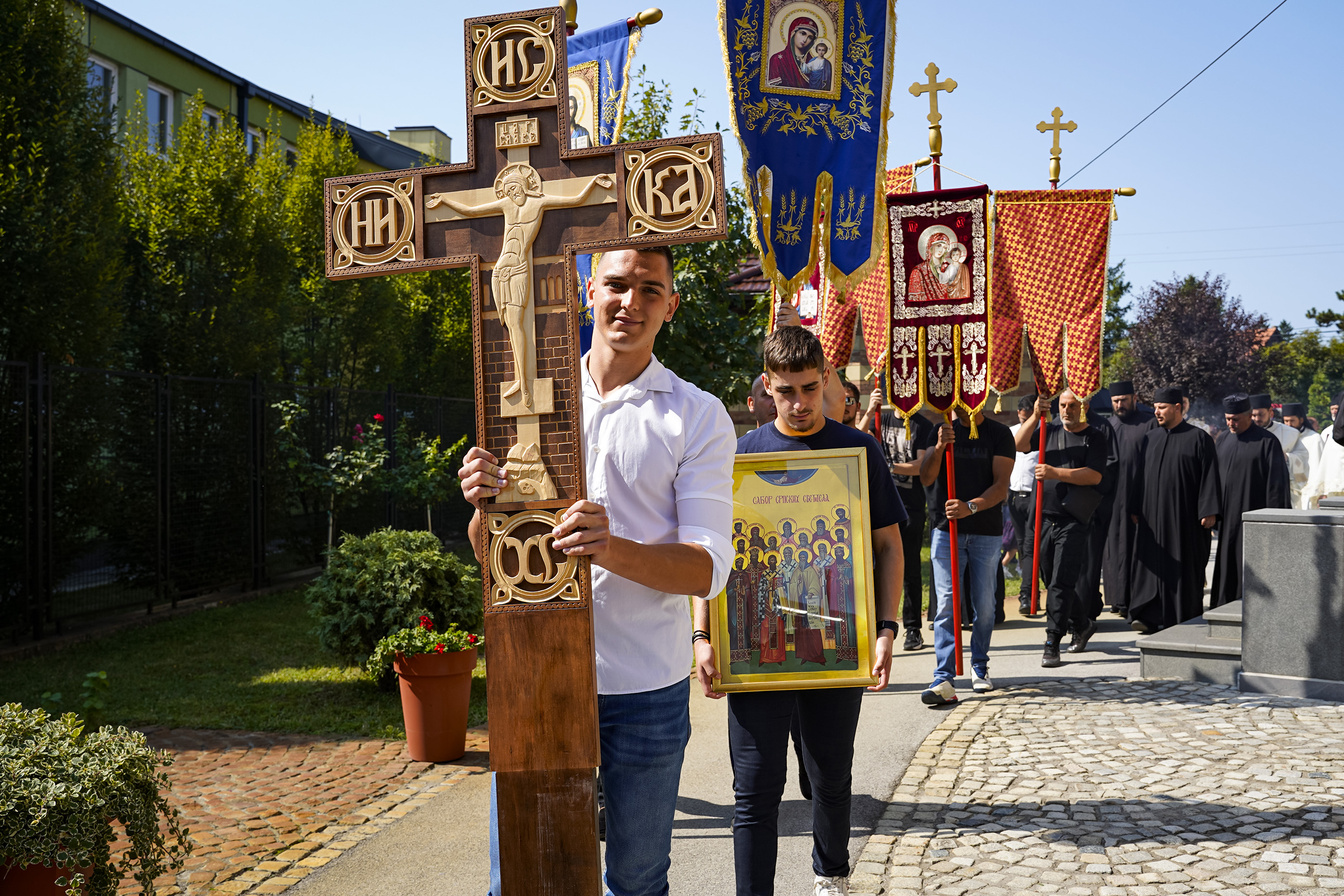 Након Свете Литургије је начињен литијски опход и преломљен славски колач. Честитајући славу старешини Храма Сабора Српских светитеља, протојереју Гордону Василићу, домаћину славе Николи Филиповићу и његовој породици, Владика Исихије је благосиљао парохијане и све које је прослава празника са разних страна довела у ову посавску светињу. Сабрање је заокружено молебном за успешан почетак школске године, коме је присуствовао велики број ђака и студената. Владика Исихије је покропио школарце освећеном водицом и даривао их иконицама Пресвете Богородице, уз пастирску поуку да у школи негују заједништво у љубави са другарима, да се моле, покажу доброту и љубазност, чинећи добра дела са љубављу.