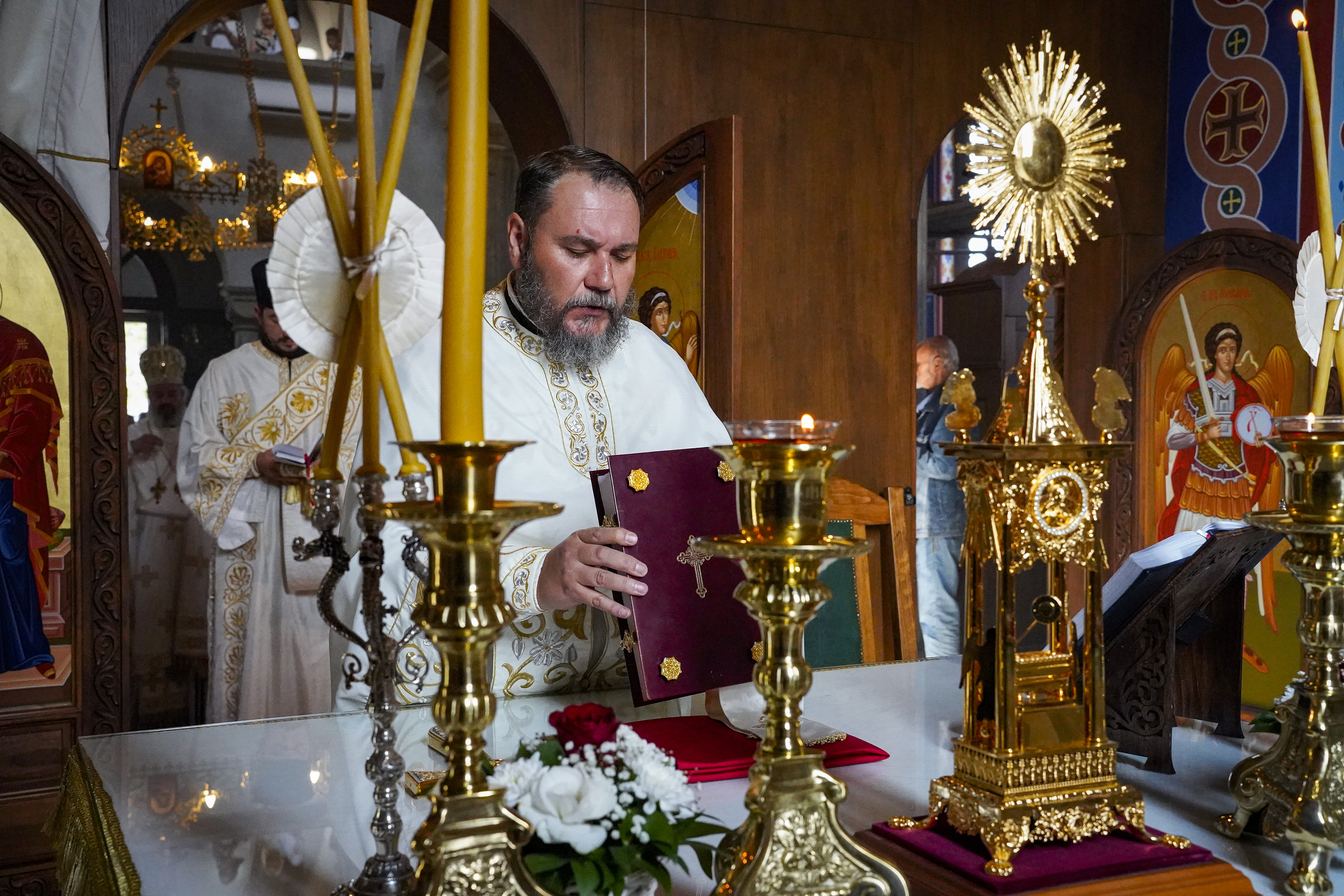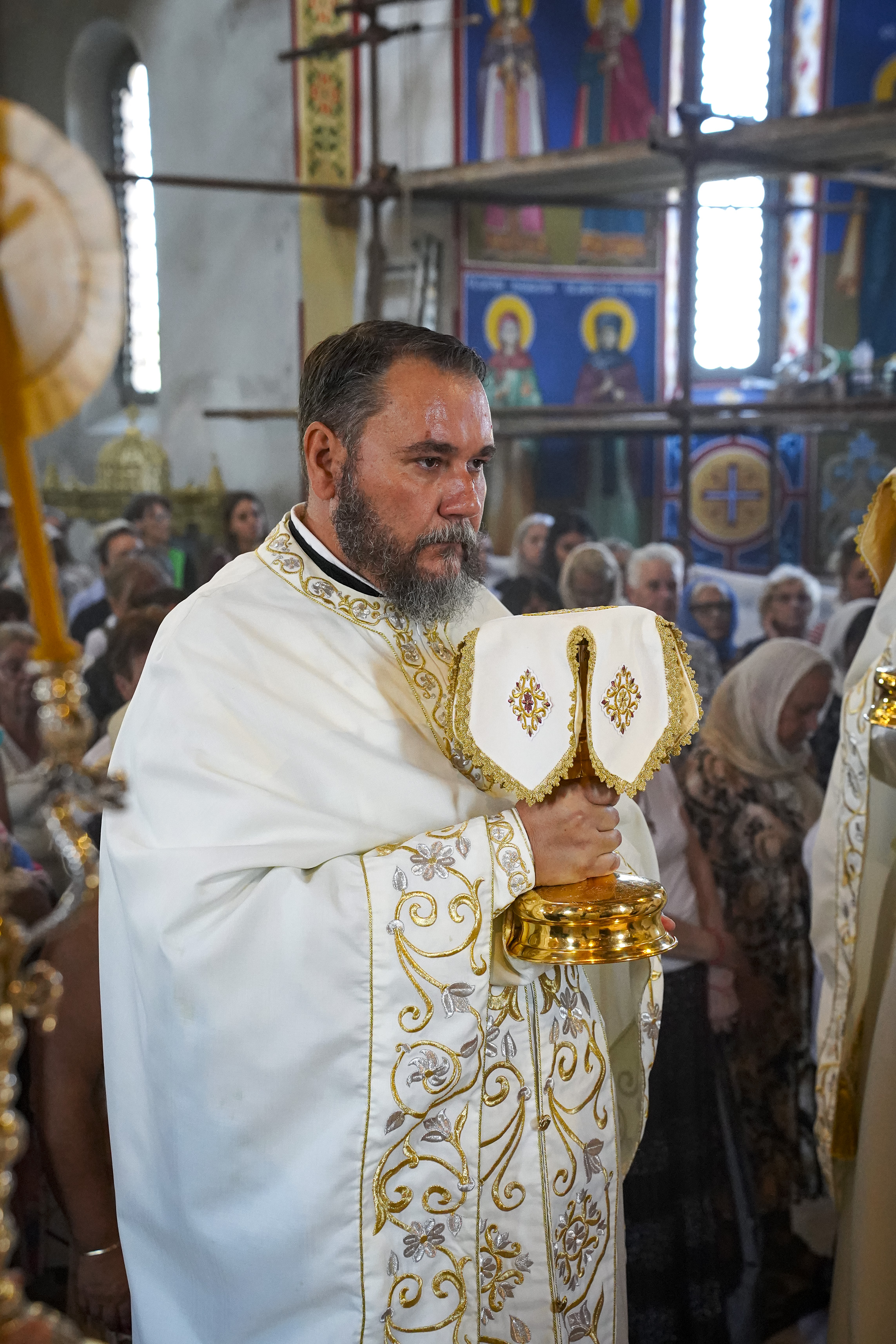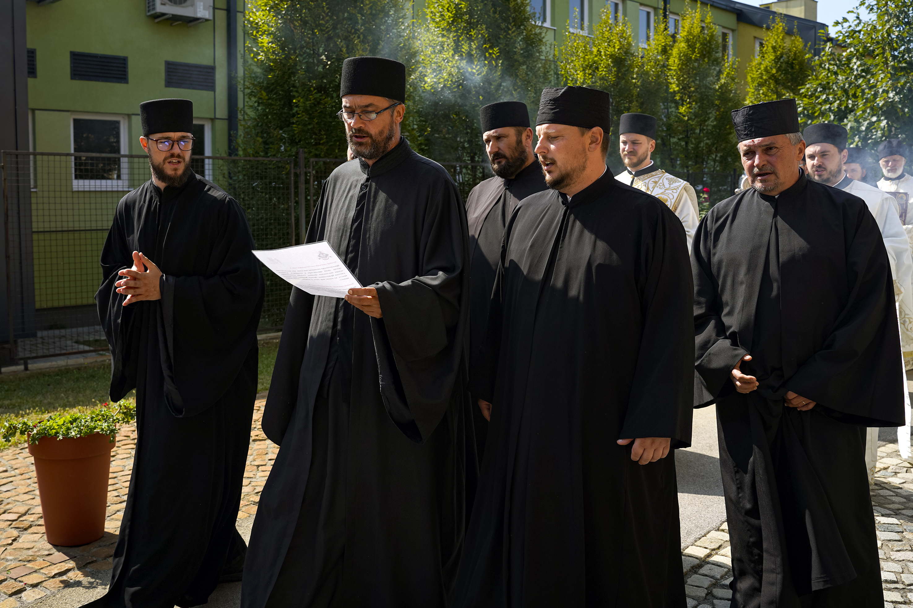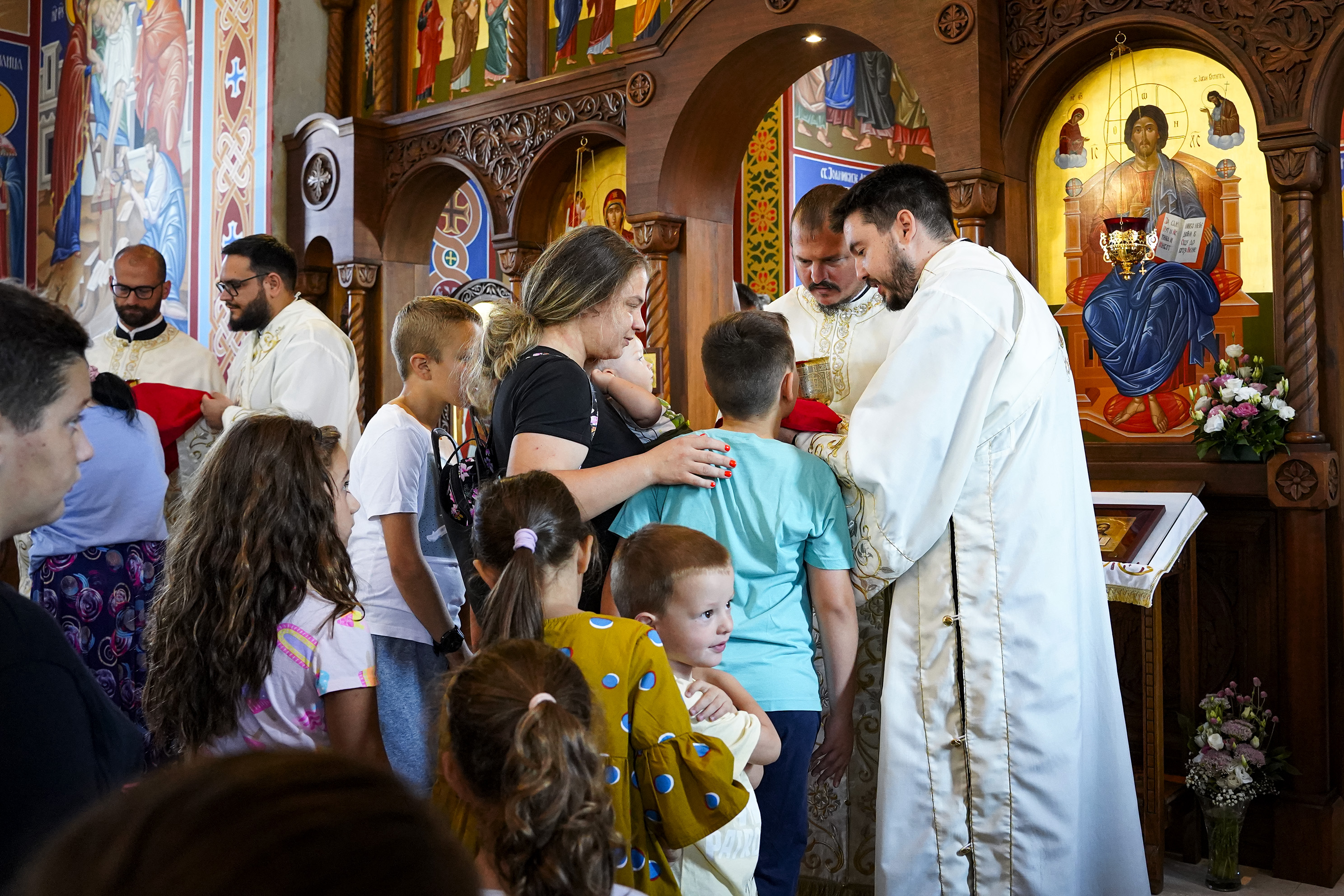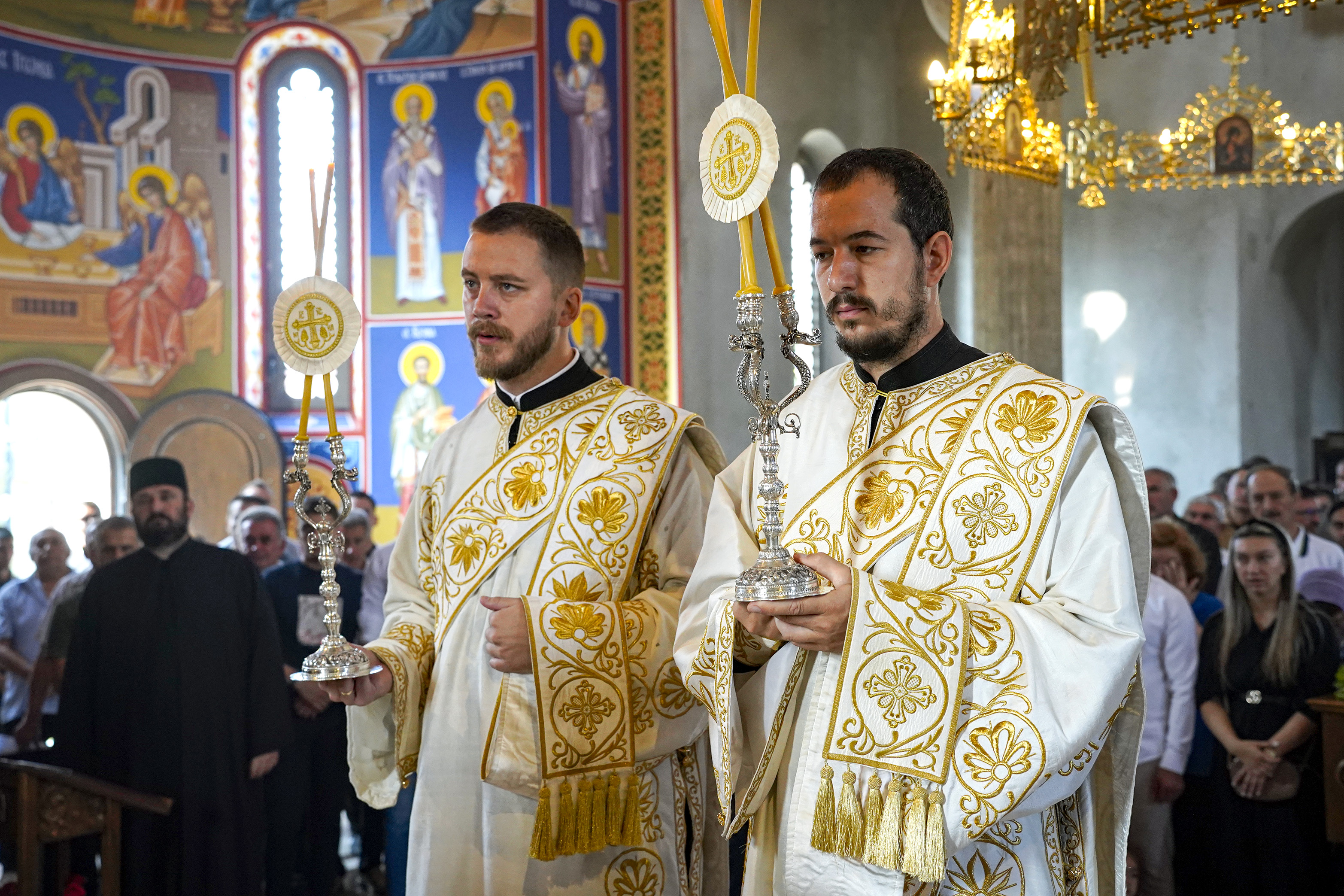 Након Свете Литургије је начињен литијски опход и преломљен славски колач. Честитајући славу старешини Храма Сабора Српских светитеља, протојереју Гордону Василићу, домаћину славе Николи Филиповићу и његовој породици, Владика Исихије је благосиљао парохијане и све које је прослава празника са разних страна довела у ову посавску светињу. Сабрање је заокружено молебном за успешан почетак школске године, коме је присуствовао велики број ђака и студената. Владика Исихије је покропио школарце освећеном водицом и даривао их иконицама Пресвете Богородице, уз пастирску поуку да у школи негују заједништво у љубави са другарима, да се моле, покажу доброту и љубазност, чинећи добра дела са љубављу.