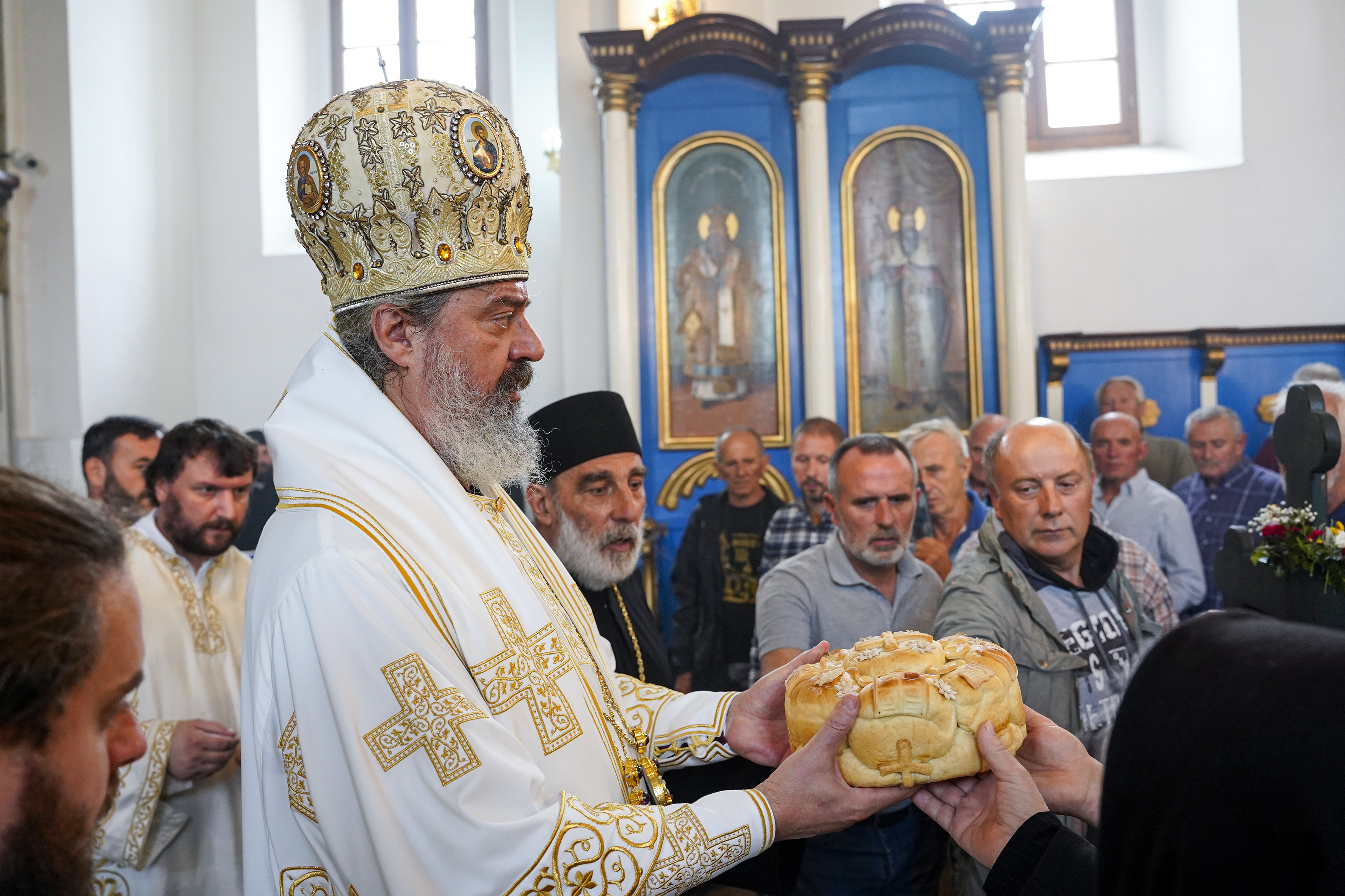 У празничној проповеди, Владика Исихије је расветлио тренутак из данашњег јеванђеља- позив упућен свима нама да учествујемо у делу Божјем (Мт 22, 1- 14), односно будемо Његови сарадници, а потом и синови и кћери. Имамо неке ствари овога света, које су оробиле наше срце и свест, те постале важније од Господа и љубави према ближњем, савршене заједнице, метафорички приказане свадбеним пиром на који нас зове. Нова година, коју данас обележавамо, истакао је проповедник, управо је тај пир (гозба), зато што је свет створен од Бога као савршен. Човек, будући словесно биће по лику Божјем, јесте врхунац створеног, уз задатак уподобљавања, следовања Творцу и слушања речи Божје кроз Свето писмо и на Светој Литургији- гозби на коју нас Господ увек позива.