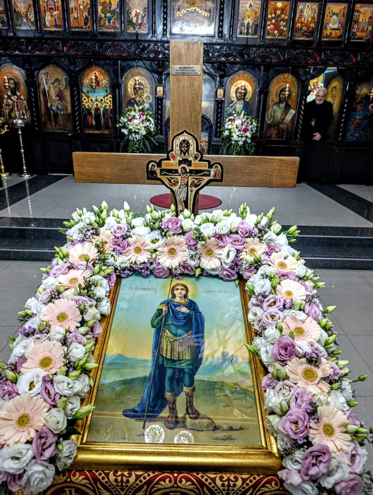 Светом Литургијом на дан празника началствовао је архијерејски намесник подгорски јереј Борко Јаковљевић, уз саслужење умировљених протојереја – ставрофора Михаила Павловића, Живојина Петровића, Миломира Ћосића, Михаила Станковића, управника Службе за поклоничка путовања Епархије ваљевске протонамесника Славка Обрадовића, јереја Милована Стевановића и ђакона Слободана Андрића. У надахнутој беседи отац Михаило Павловић указао је на подвиг и величину Светог Димитрија, на којег и ми данас треба да се угледамо.