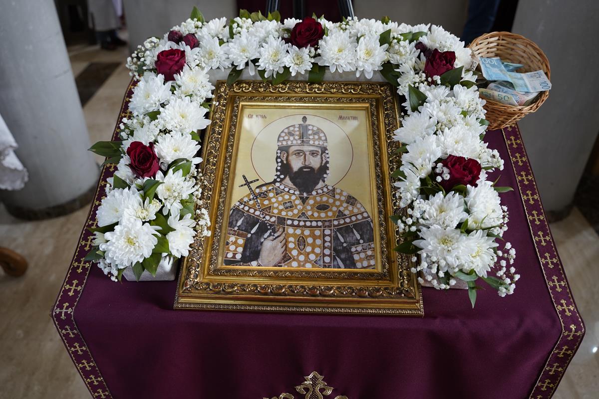 По Светој Литургији, начињен је литијски опход и преломљен славски колач. Честитајући празник Светог Краља Милутина и брата му Краља Драгутина, чији се спомен такође данас прославља, Владика Исихије је рекао да треба да им се помолимо да нас умудре, као и да их имамо за узоре у вођењу државе, општине и сопственог дома. Јер, појаснио је ваљевски архипастир, свако од нас има удео у владарству, будући да нас је Бог све поставио да владамо земљом. То треба да чинимо благочестиво, да будемо добри управитељи свог дома, породице, предузећа, школе… тако су чинили наши владари, због чега су многи од њих постали свети, а и међу онима који нису, нагласио је Владика Исихије, било је благочестивих и трудољубивих владара управо због богоугодног односа према свему што им је дато.