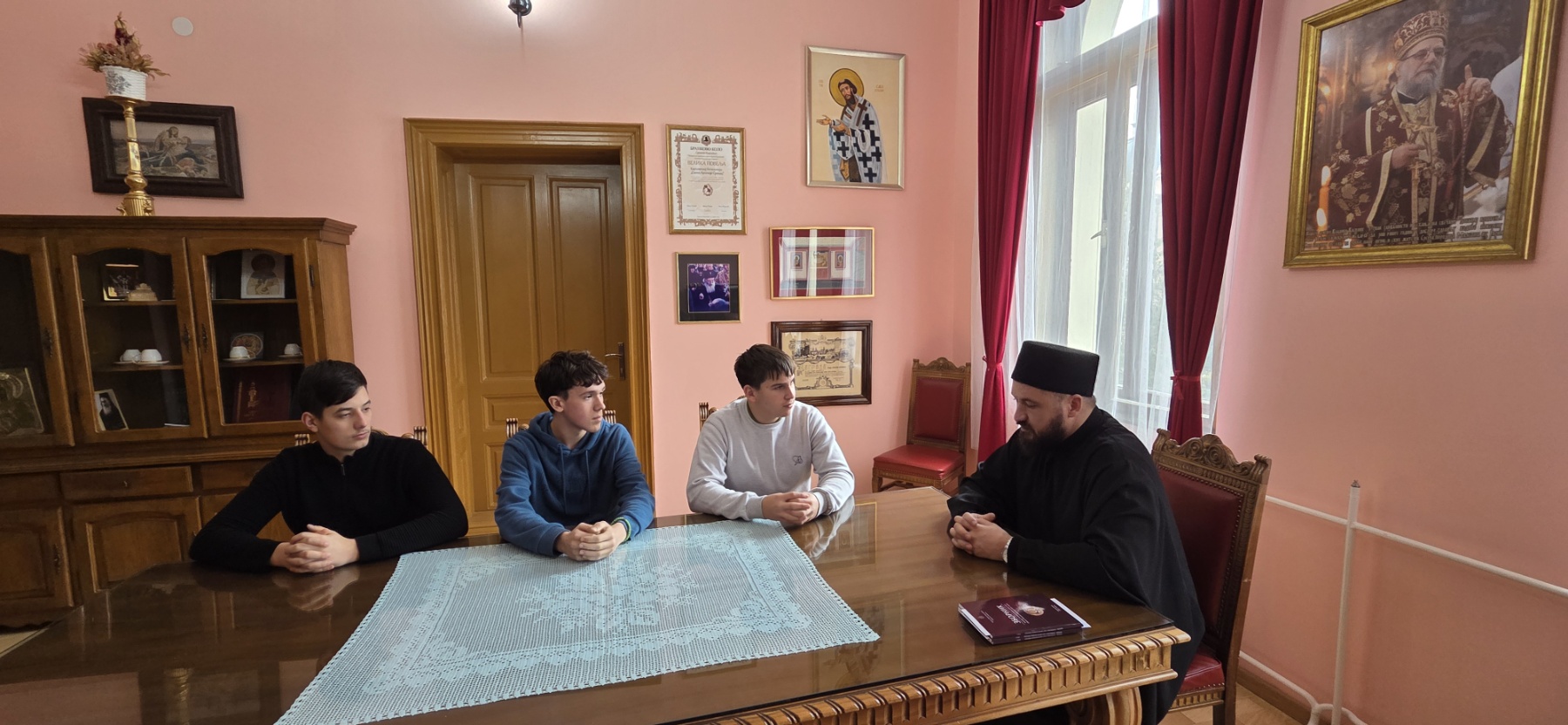 Једна од најстаријих и најважнијих образовних установа српског народа, Богословија Светог Арсенија Сремца у Сремским Карловцима, која баштини традицију Клирикалног училишта основаног 1749. године, место је са ког се могу понети драгоцена искуства у стварању нових нараштаја проповедника речи Божје и приближавању овог вида образовања на свим светосавским мисионарским просторима. Вођени тиме, али једнако и пастирском бригом за ученике ове школе са подручја Епархије ваљевске, са благословом Преосвећеног Епископа ваљевског г. Исихија, Карловачку богословију су 27. новембра 2025. године посетили архијерејски заменик Епископа Исихија, протонамесник Филип Јаковљевић, и секретар Епархијског одбора за веронауку јереј Јован Новитовић. За званичнике Епархије ваљевске пријем је уприличио ректор Карловачке богословије, протојереј-ставрофор др Јован Милановић, са сарадницима. У клупама ове школе тренутно се налазе три ученика из Ваљева: Никола Стевановић (1. разред), Матеја Марковић (1. разред) и Милутин Симић (2. разред) те су протонамесник Филип Јаковљевић и јереј Јован Новитовић поразговарали са њиховим разредним старешинама о њиховом успеху, оценама, владању и свему што чини школовање. Такође, било је речи и о могућностима сарадње Карловачке богословије и Одбора за верску наставу Епархије ваљевске, како би се будућим средњошколцима у нашем крају приближило образовање у богословијама, те некима од њих управо ове образовне установе биле одабир на њиховом академском путу. Сусрет је протекао у срдачној атмосфери и размени мишљења, са жељом да се из њега изроде нови подухвати од духовне користи за све који учествују у процесу образовања будућих пастира Српске Православне Цркве.