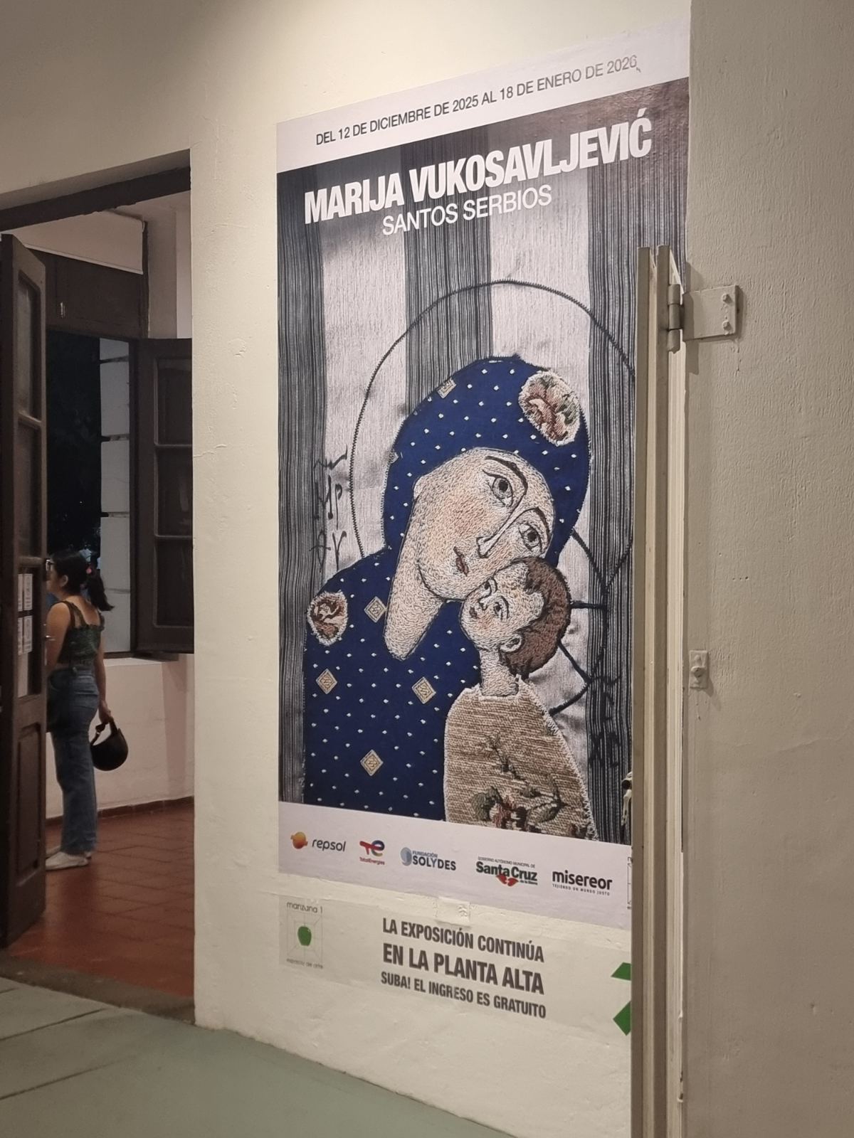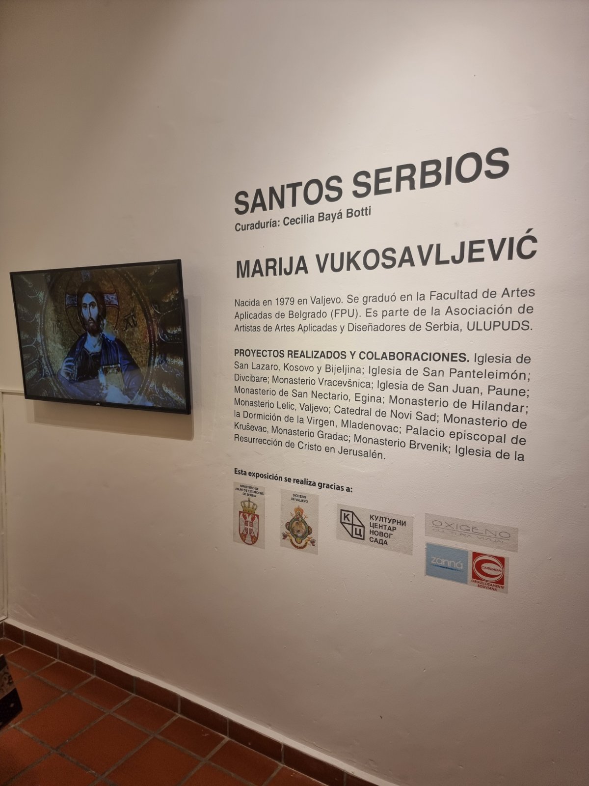 Са благословом и уз свесрдну подршку Преосвећеног Епископа ваљевског г. Исихија и Епархије ваљевске, Министарства спољних послова Србије, Културног центра Новог Сада, а заслугом почасног конзула Србије у Боливији, Жане Петковић Родригез, и кустоса Галерије “Mansana uno” Сесилије Баје Боти, 11. децембра 2025. године отворена је изложба икона у везу угледне сликарке из Ваљева Марије Вукосављевић, у којој ће поклоници ликовне уметности у Санта Крузу моћи да уживају наредних месеца дана. Свечани чин отварања улепшао је Дечји хор “Пријатељи уметности” извођењем српских песама на шпанском језику