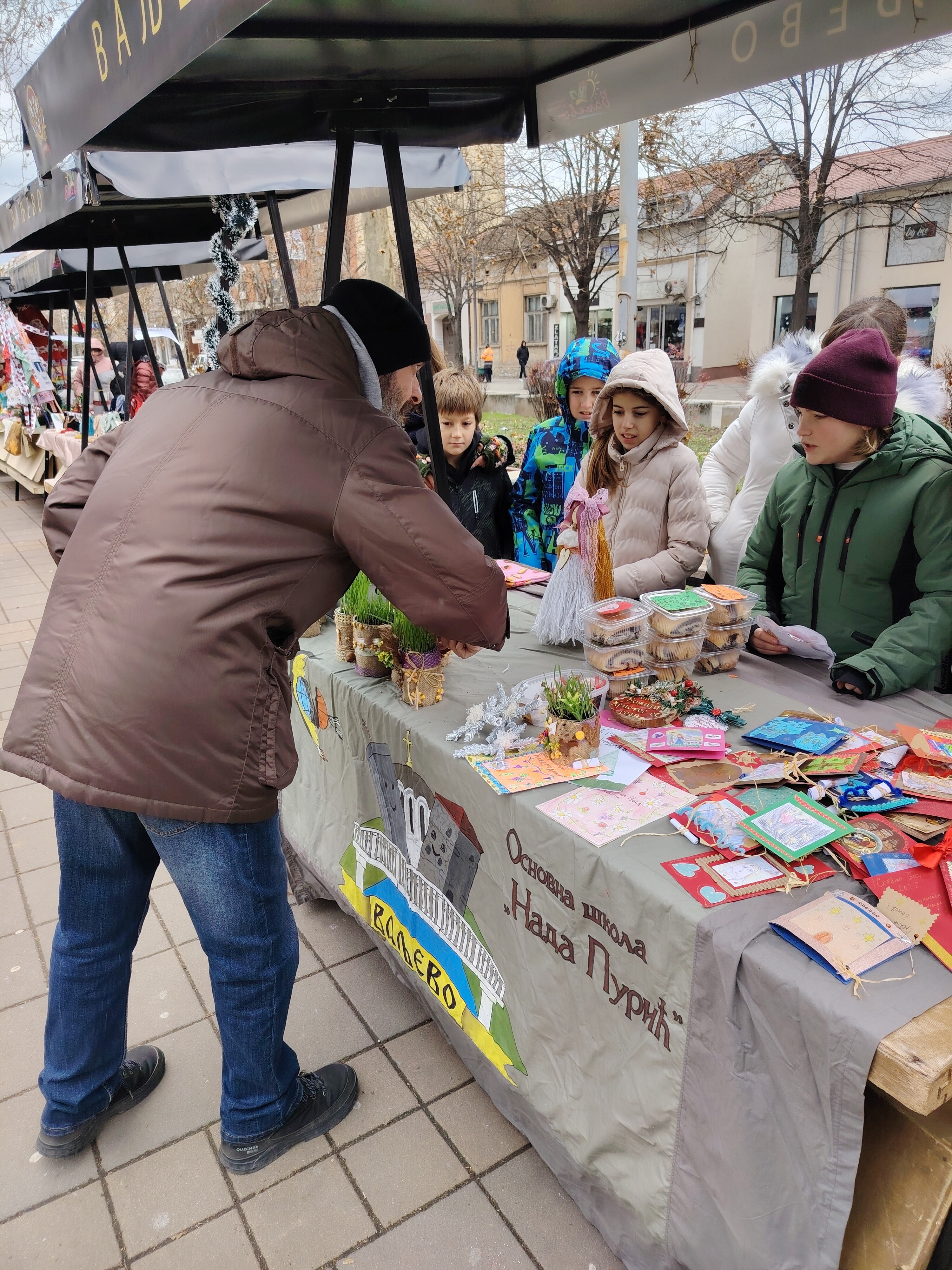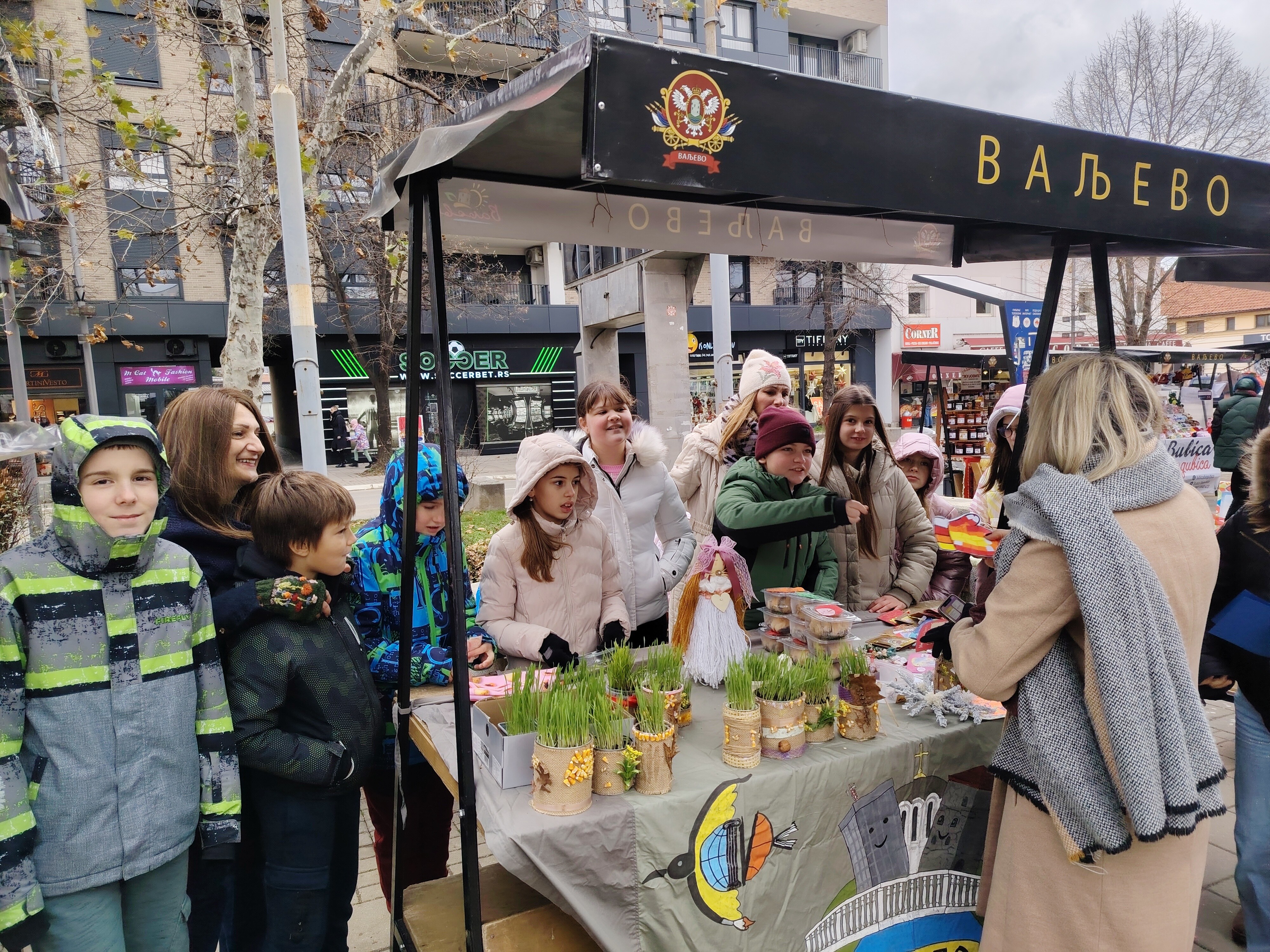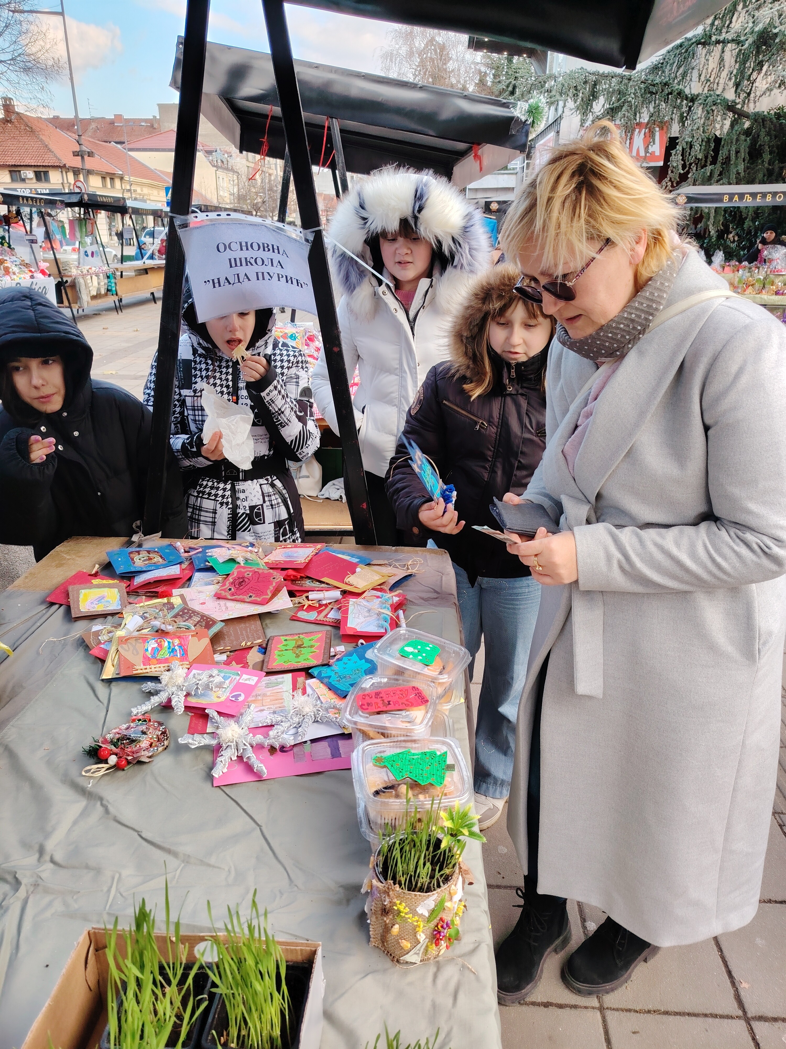 – Деца су уживала на радионицама. Правили су и украшавали са љубављу и сакупљали слаткише у школи са искреном жељом да помогну својим вршњацима. Наиме, сав приход од продаје намењен је Хуманитарној акцији “Да се свако дете радује”, коју традиционално, уз благослов Преосвећеног Епископа ваљевског г. Исихија, организује Светосавска омладинска заједница на челу са духовником јерејем Мијом Бојиновићем. Иначе, они су на овакве акције навикнути још крај својих учитељица, те су креативан рад и хуманитарне акције нешто што им је заиста блиско и што јако воле- поделила је радост вероучитељица Лијана Крунић, разредни старешина V4, крај штанда на Градском тргу чија је понуда привукла бројне пролазнике. Све изложено јако брзо је пронашло власнике. У маниру добрих трговаца, понешто би и поклонили купцима. Макар свилену бомбону са оближњег штанда лицидара. Новца је прикупљено довољно. Деца за бројеве и апоене не маре. Даровима су послали љубав и добре жеље вршњацима, а та вредност само је срцу позната.