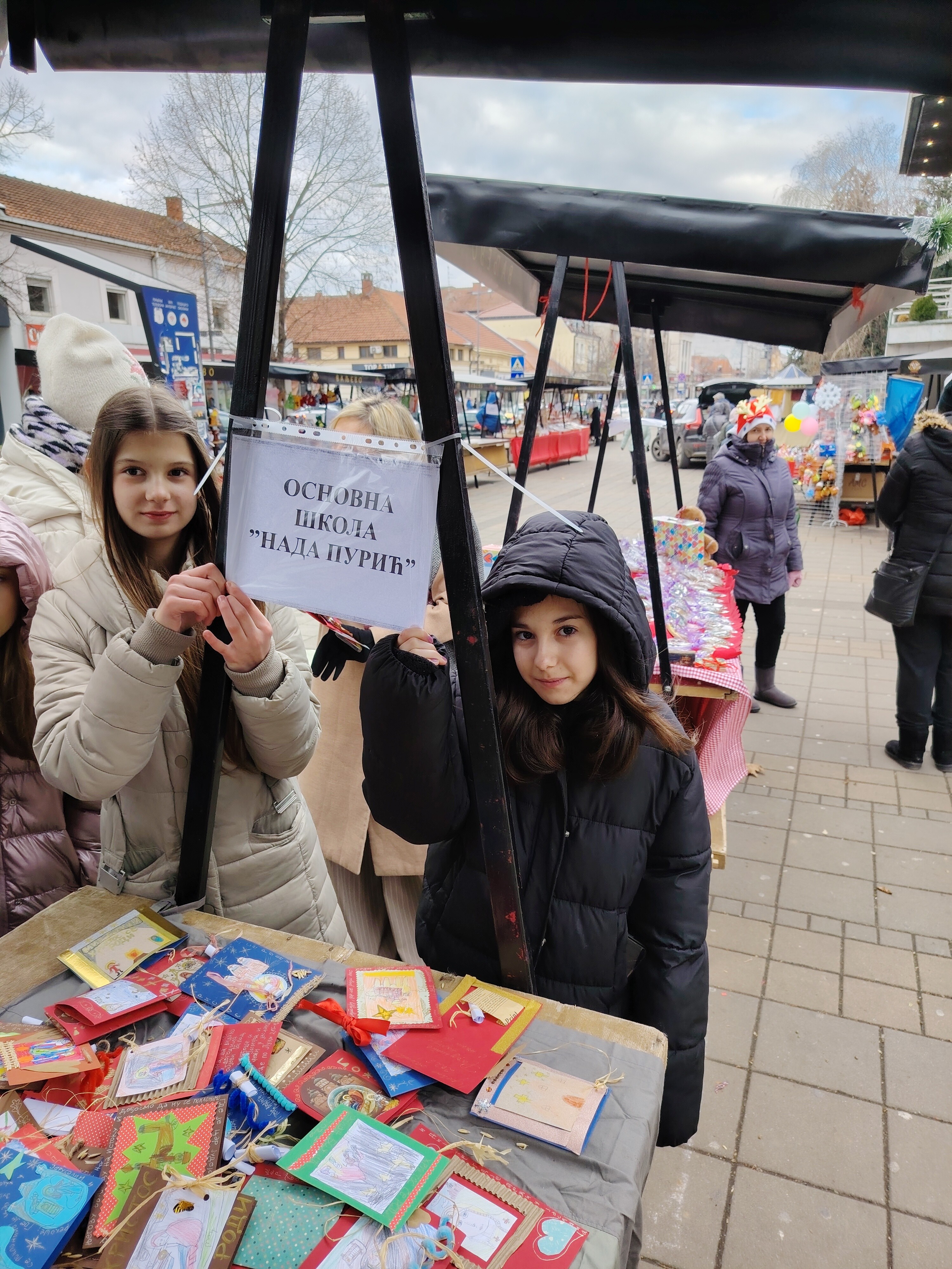 На часовима биологије, крај наставнице Данијеле Николић, пратили су клијање пшенице. На веронауци, уз разредну Лијану Крунић, учили о Рођењу Господа Христа и обичајима који прате Најрадоснији празник. Из свега тога је проистекла радионица “Клијање и Божић” на којој је научено, помогнуто маштом, створило лутке у виду анђела, украшене саксије пшеничног класја, божићне честитке са јеванђељским поукама и, уз помоћ мама и бака, штрудле са маком и друге колаче за посне трпезе. И све то да би се празнична радост оживела и поделила са онима на чије нас даривање Господ Христос и позива. Осамнаесторо ученика V4 Основне школе “Нада Пурић”, заједно са наставницама, изложило је своје рукотворине на традиционалном базару на Градском тргу.