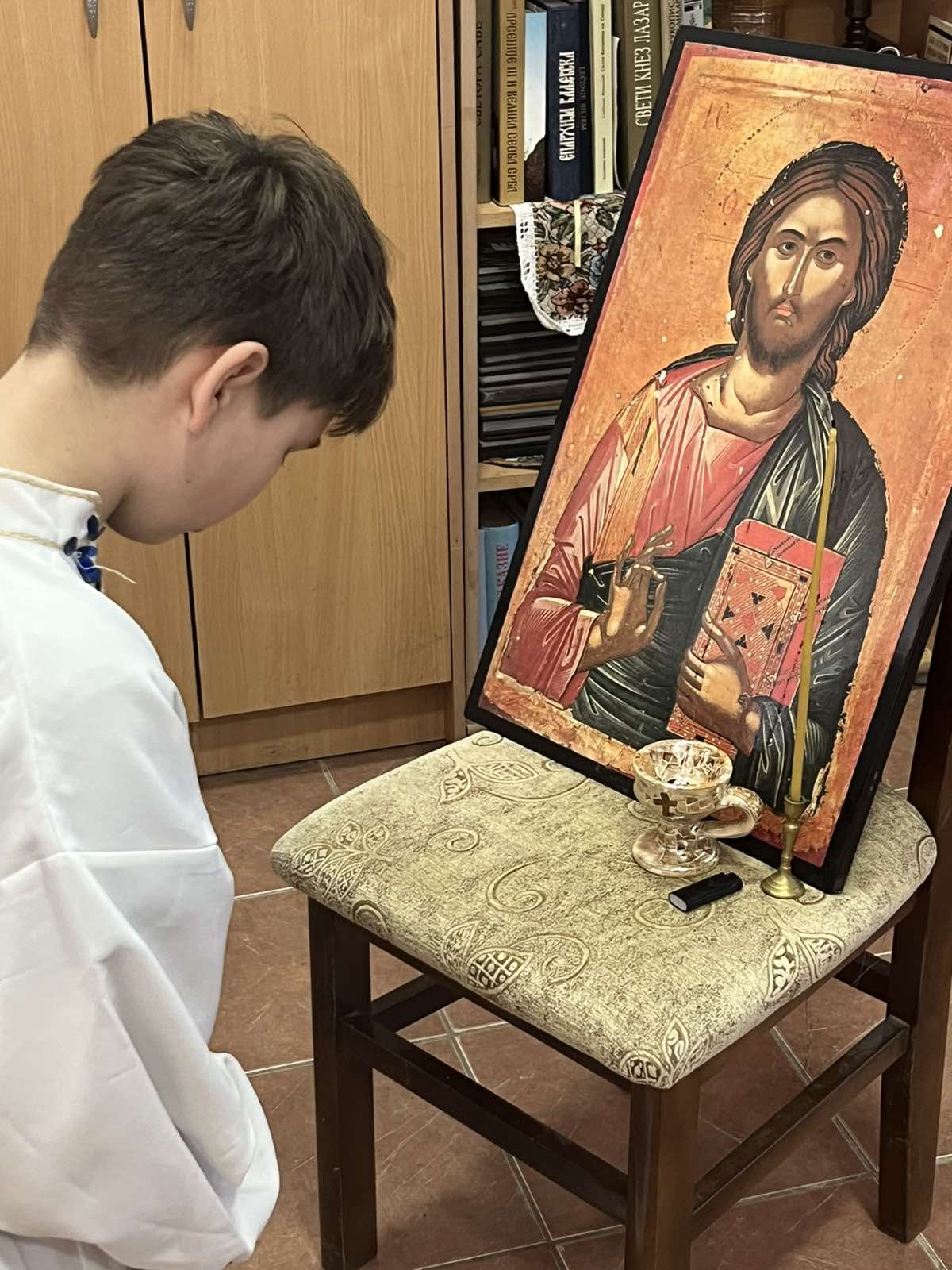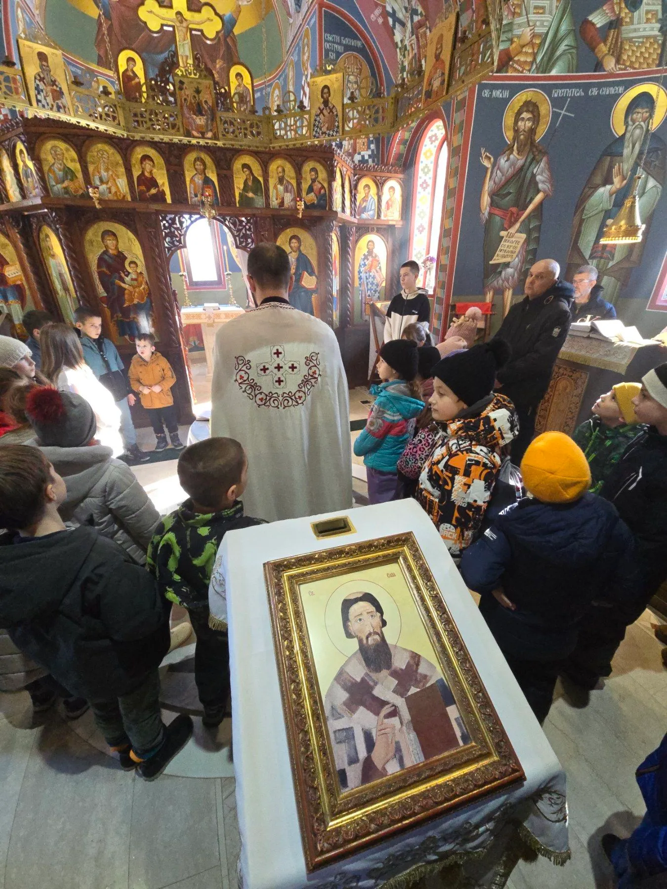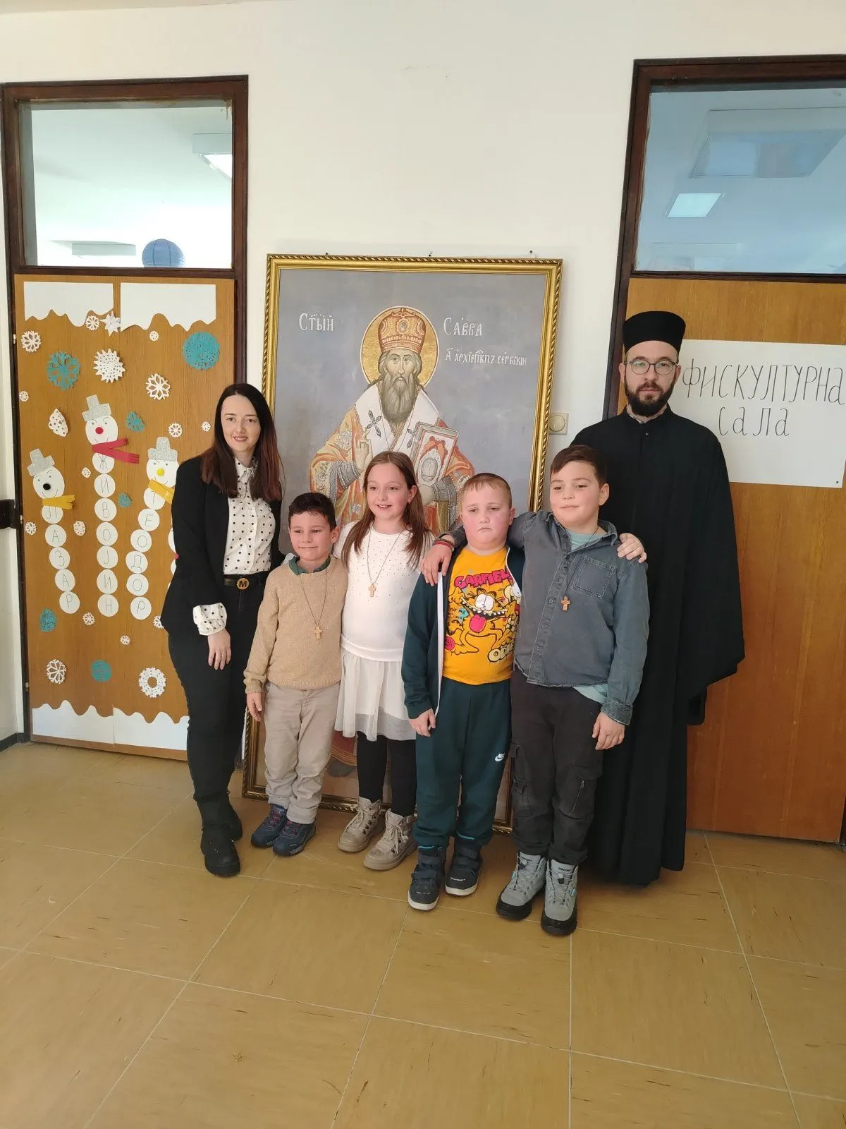 Као посебан благослов и знак пажње, Црквена општина Дивчибаре уручила је учитељици и ђацима вредан поклон — икону Светог Саве. Реч је о верном фото-издању чувене фреске из Кареје, израђеном уз драгоцену помоћ и подршку Друштва Хиландар из Ваљева. Ова икона ће од сада красити зидове школе, подсећајући ђаке на пут који води у живот вечни.
