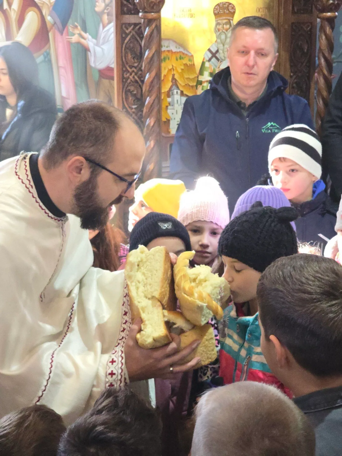 После великог аплауза и овација, присутнима се пригодном и увек поучном беседом обратио отац Илија Илић. На крају програма, он је позвао све присутне на послужење, а деци је поделио пакетиће.