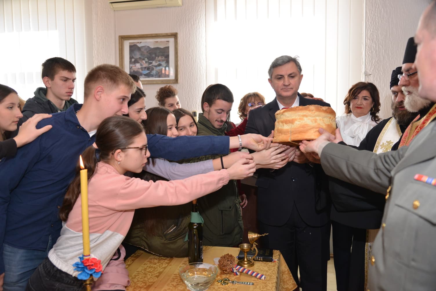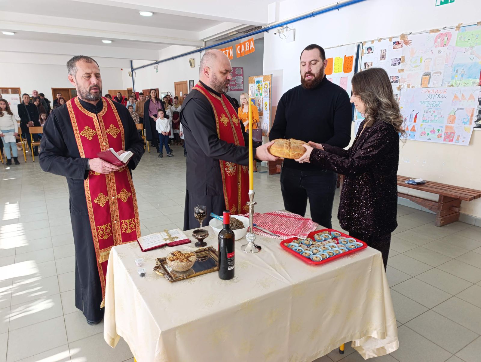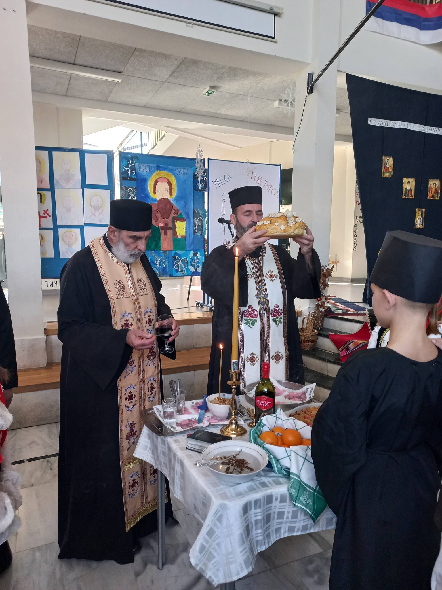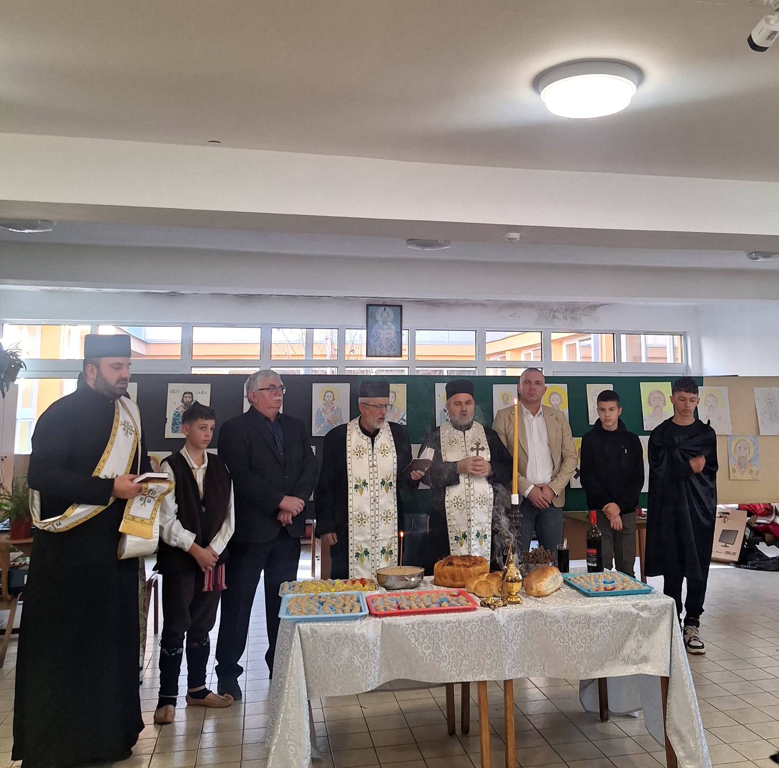 Свештенство је благословило и осветило славско жито и колач, честитајући славу свим присутнима уз жеље да им благослов Светог Саве буде извор духовне радости, знања и љубави у њиховим срцима. Пригодним речима, свештеници су указали на значај христоцентричног живота, непролазне вредности традиције и учења Светог Саве, као духовног узора и заштитника просвете.