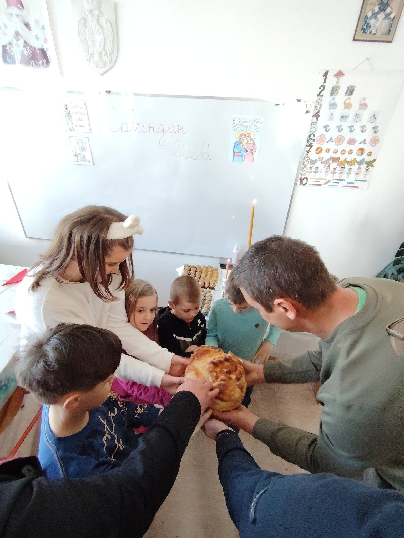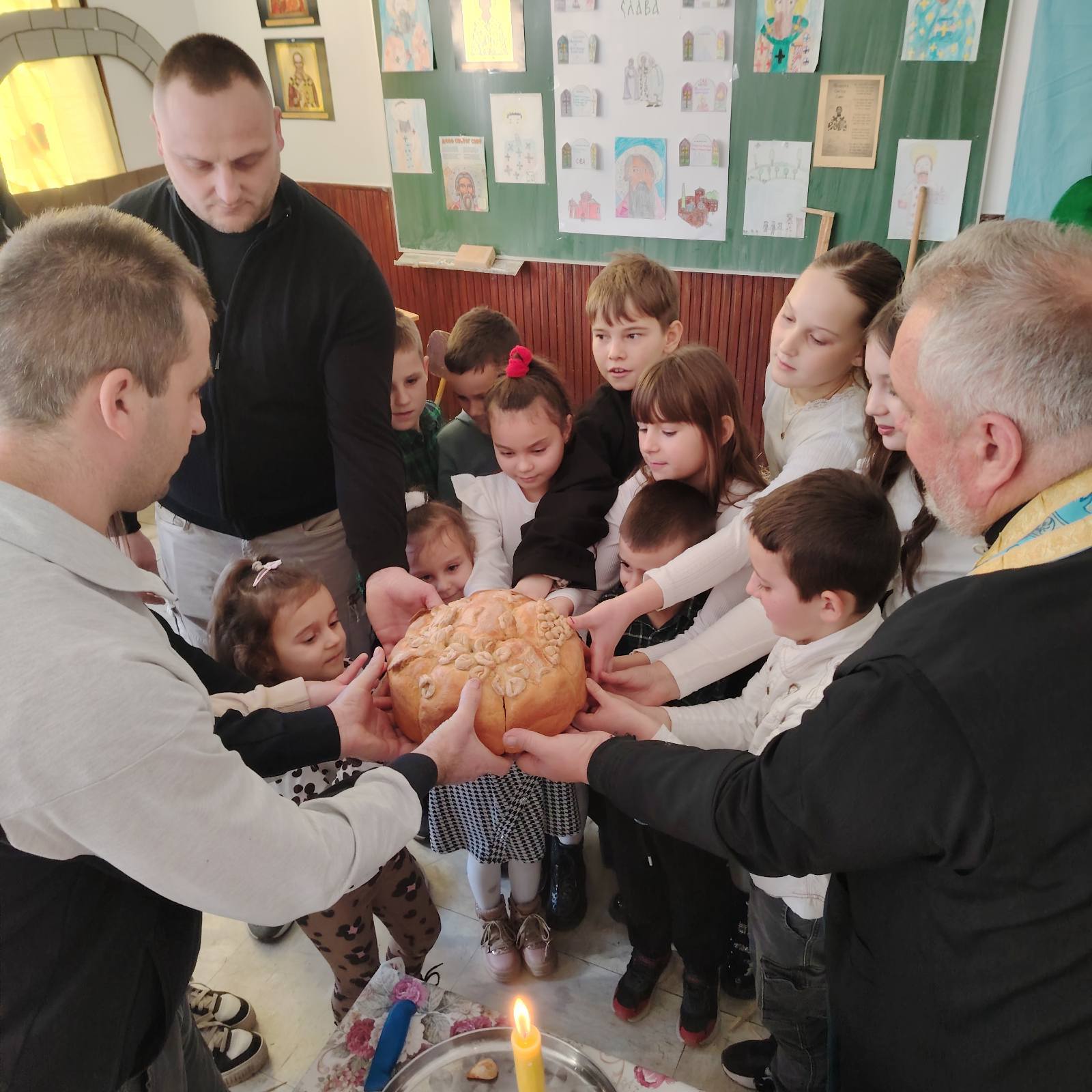Чланице Ученичког парламента су припремиле славски колач и жито за школску славу – Светог Саву. Наставница веронауке Александра Митровић Бабић објаснила је ученицама значај славског колача и симболично значење украса који прате ову традицију.