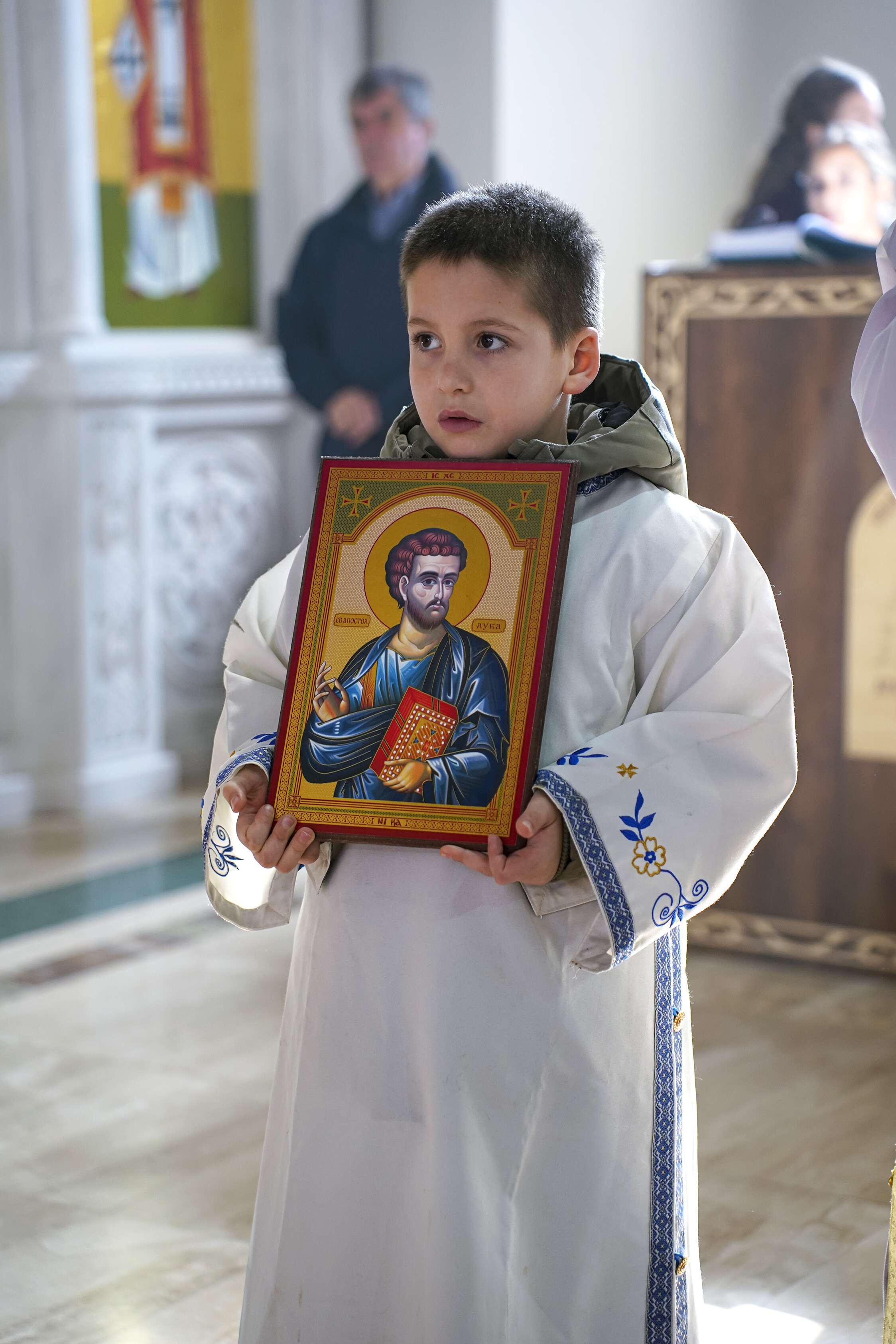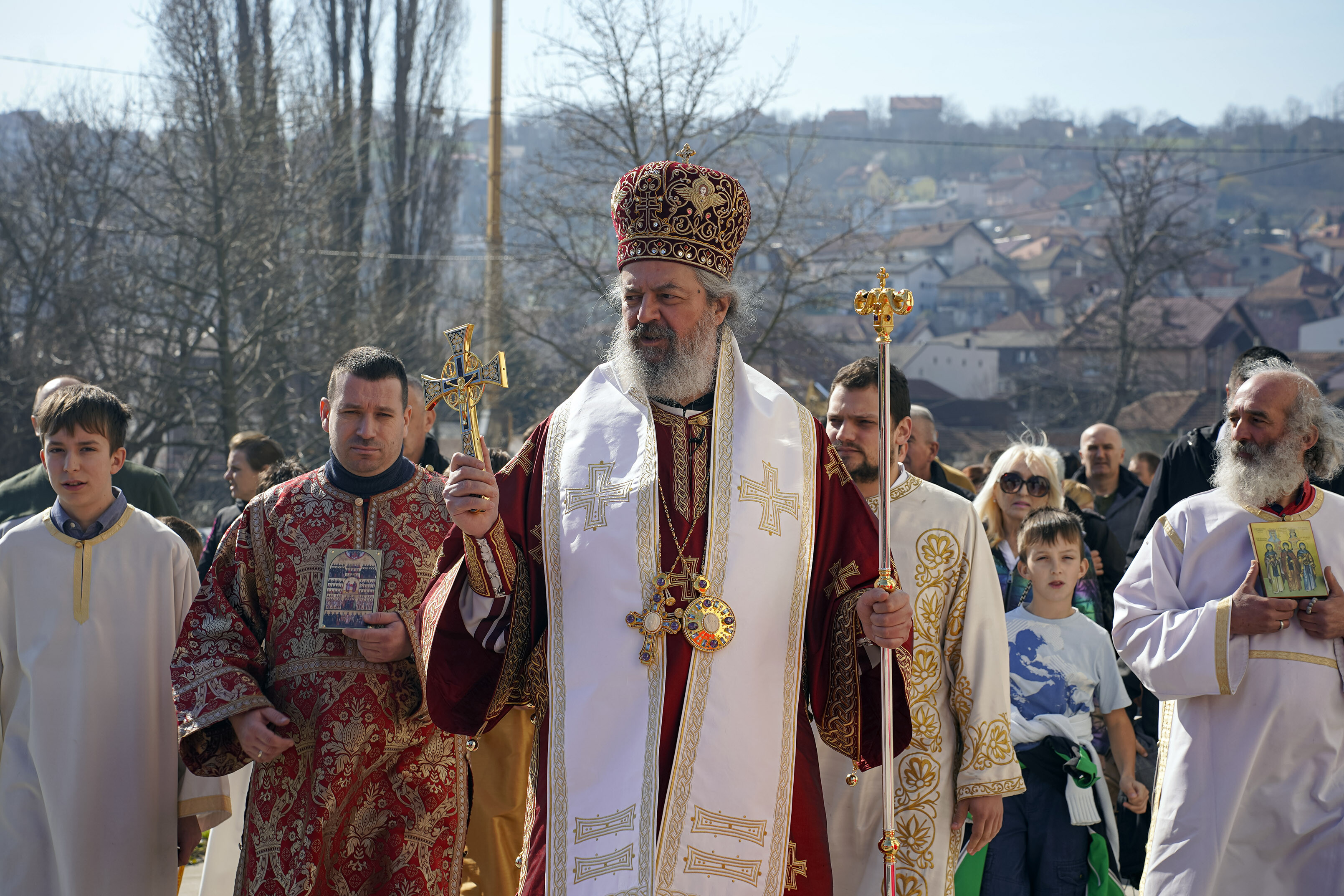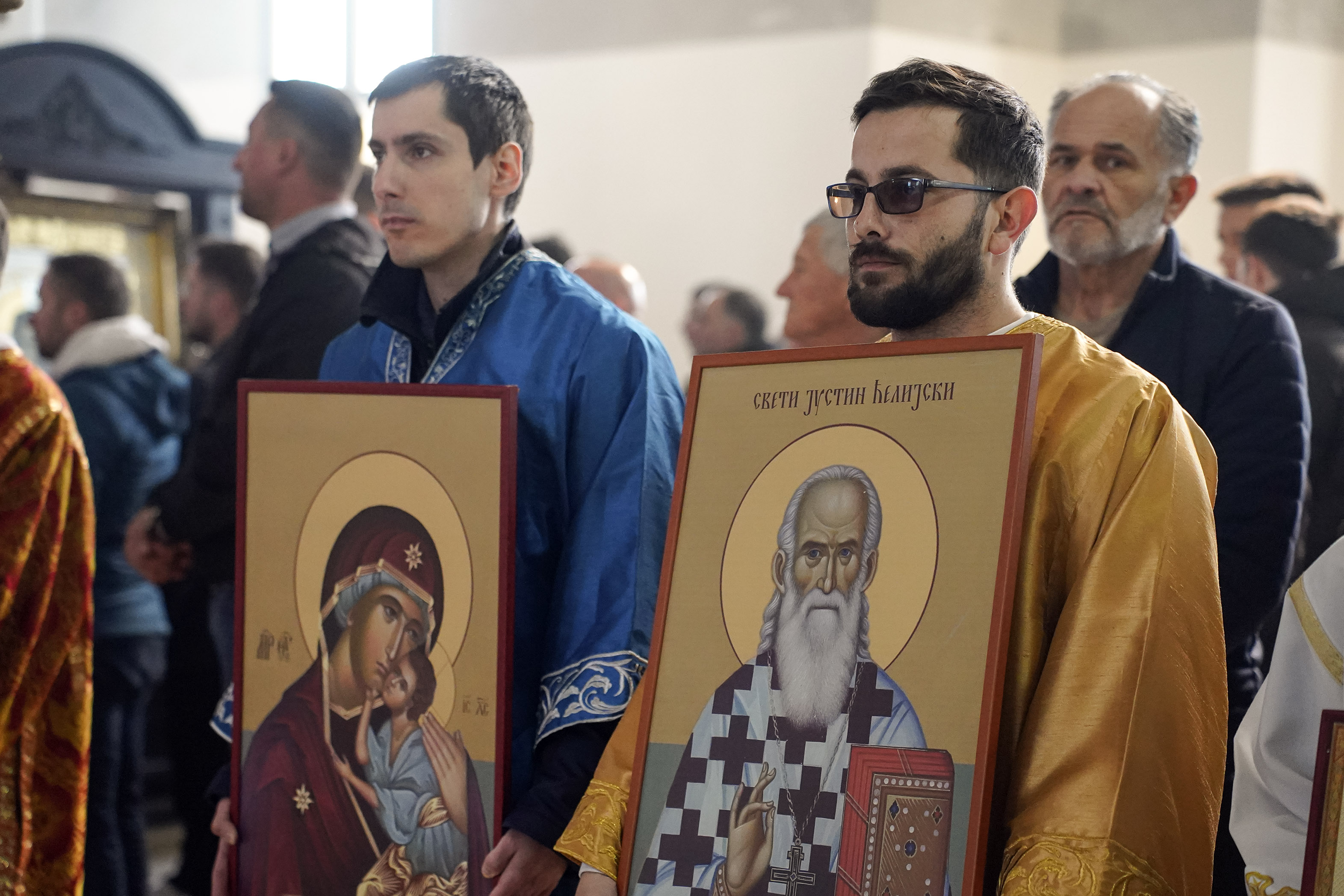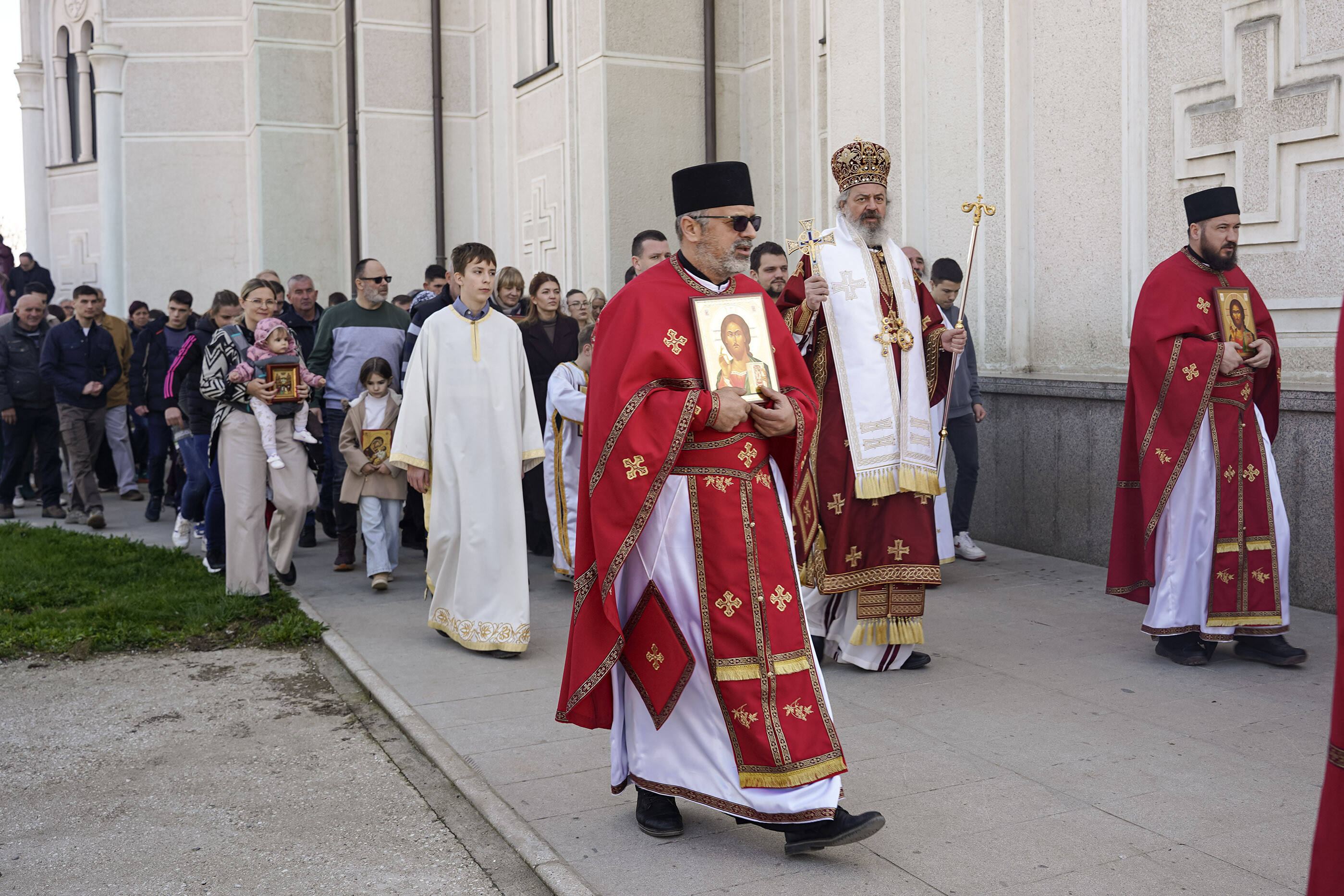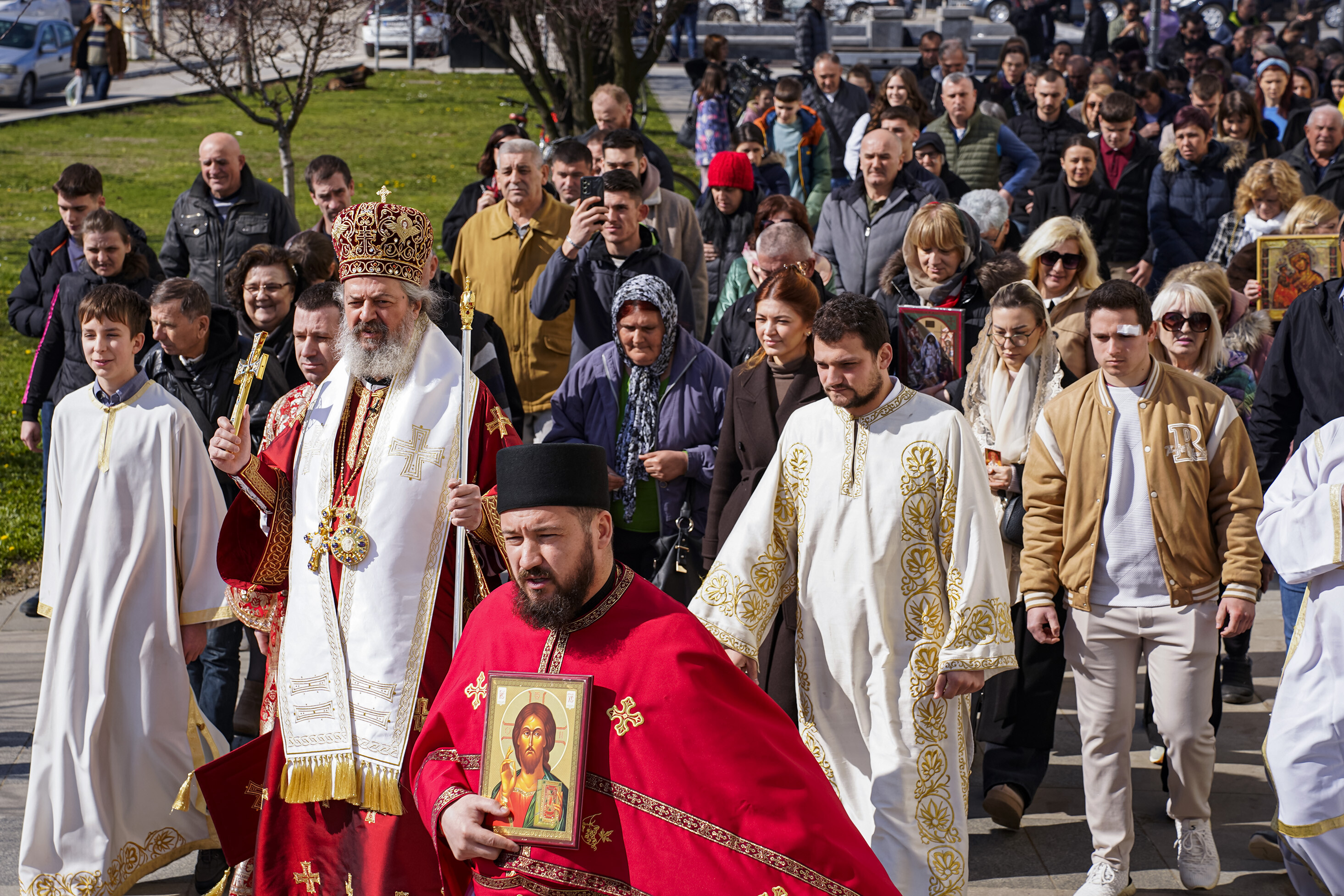 – Икона је лик, образ. Главна и прва икона јесте лик Господа Исуса Христа. Он је Сам сведочио да је икона благословена тако што је оставио чувени обрис Свог лица у Плаштаници. Нерукотворена икона је доказ да чак иако је човек не створи да она представља Његов Лик и да је достојна сваког поштовања и клањања. Свети Василије Велики говори давно пре иконоборства да се ми, гледајући на икону, “клањамо њеном прволику тј. носиоцу образа”. У цркви се клањамо пред иконом не поштујући комад дрвета, већ лик који је изображен на икони- Самог Господа, Богородицу и све свете, које је Црква пројавила као оне који су наши заступници пред Господом- објаснио је Владика Исихије смисао поштовања икона, нераскидиво везаног за духовни живот хришћана кроз векове.