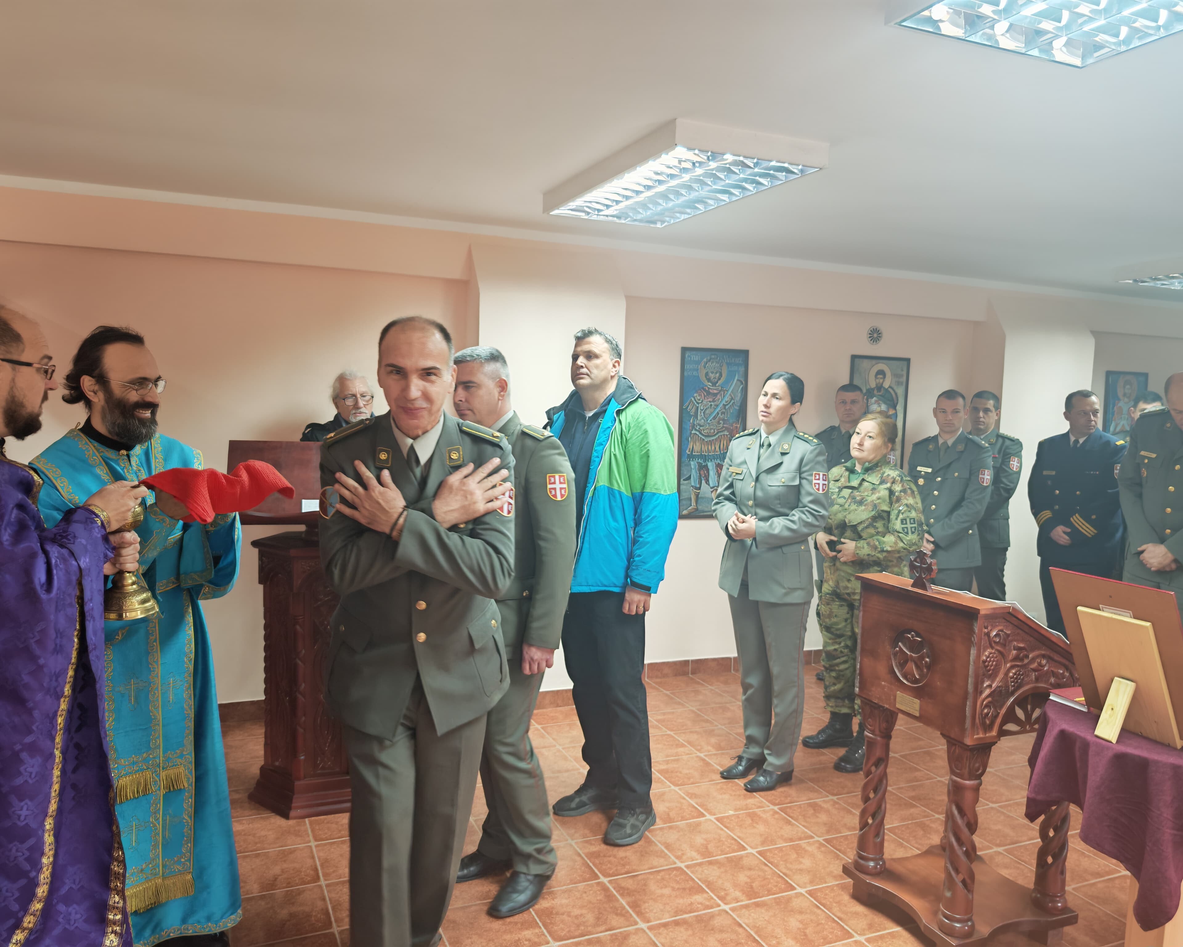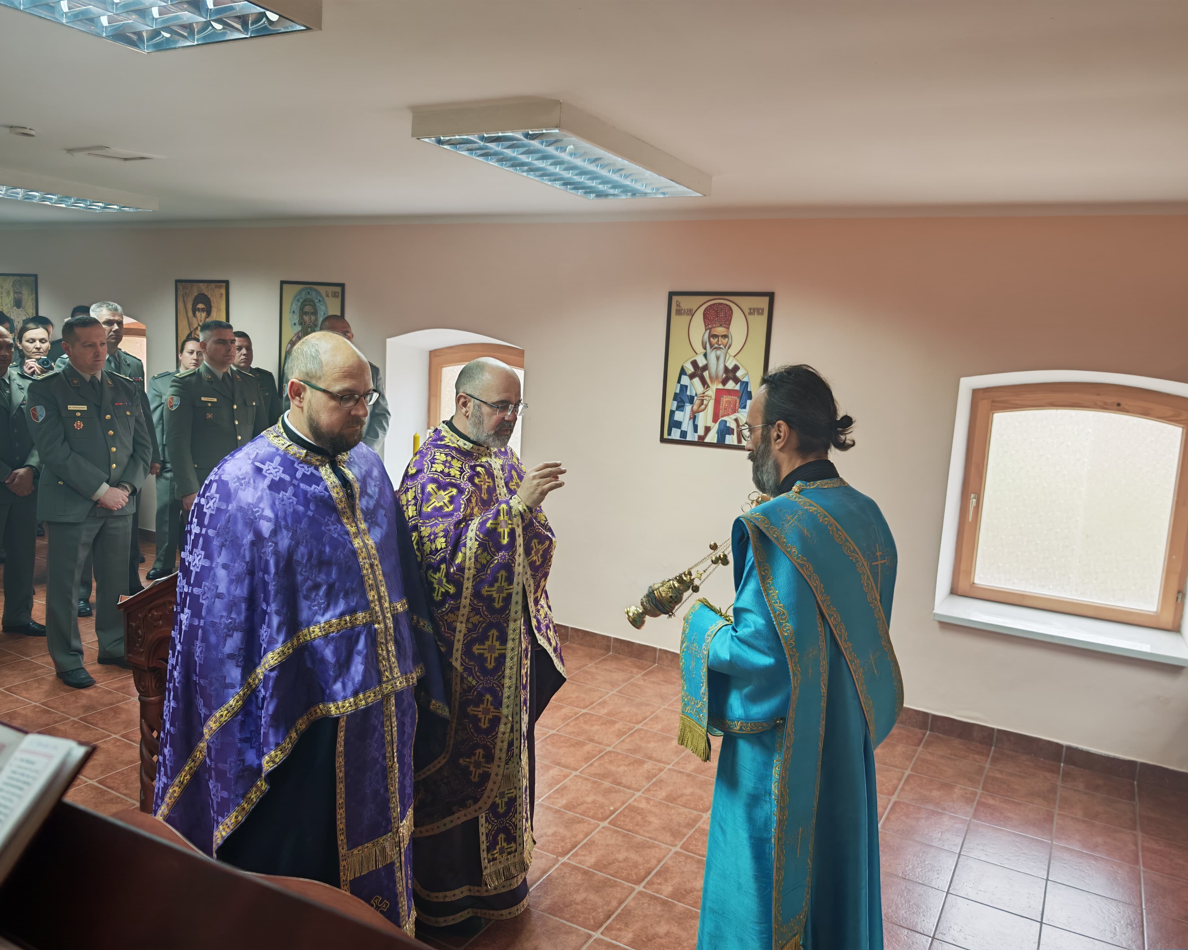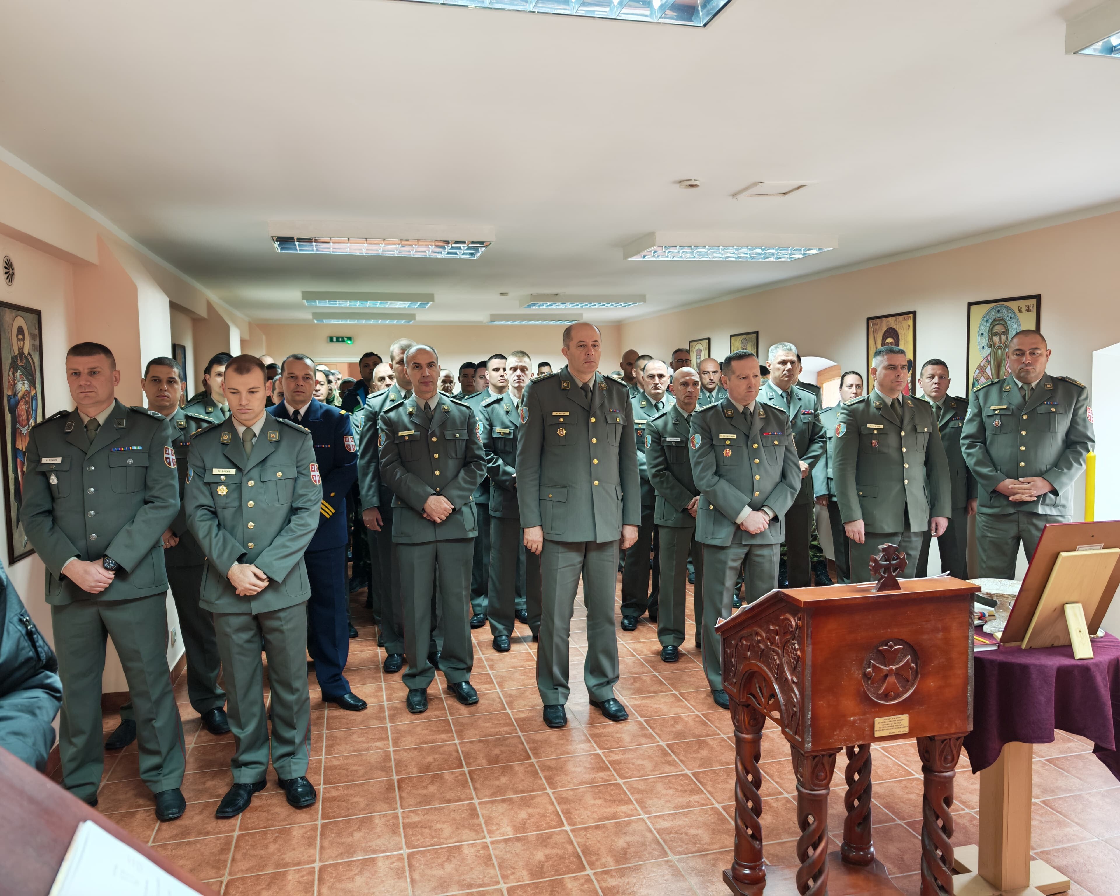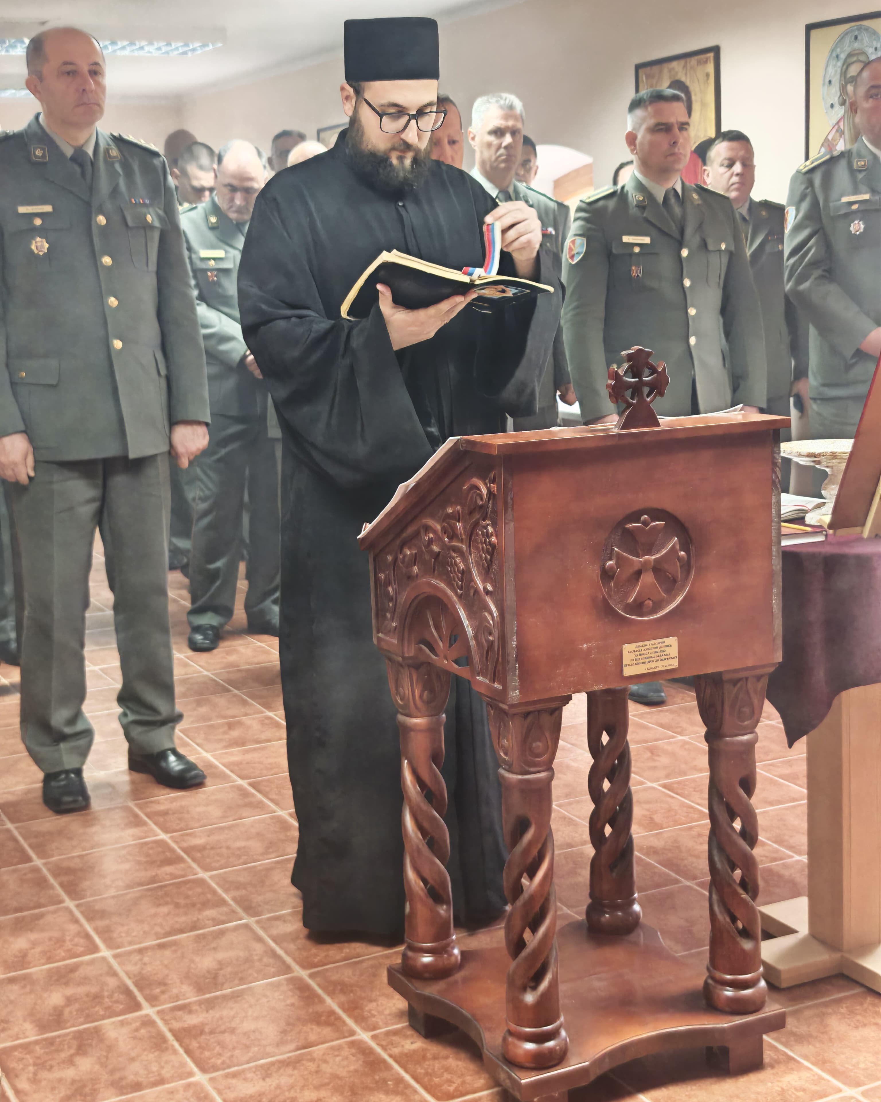 - Доказ тог преображаја смо ми данас овде. Док су можда наши оци и ђедови бацали се дрвљем и камењем на цркву, ми данас стојимо смерно у храму посвећеном Владици Николају у овој касарни. Стојимо смерно пред Господом, пред олтаром и обнављамо своју славу. Ми, који смо старешине, који носимо ове чинове, смо пример млађима од нас- указао је главни војни свештеник на одговорност коју носи служба у Војсци Србије, а коју данас достојно носе бројне старешине, док им свештеници својим молитвама пружају подршку.