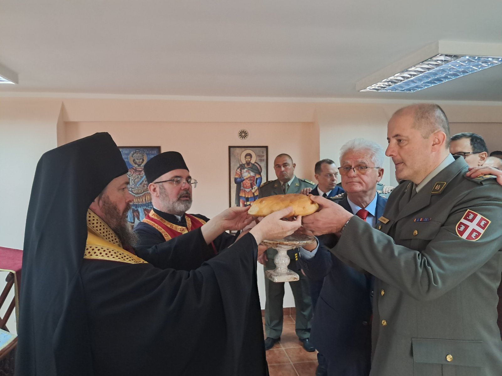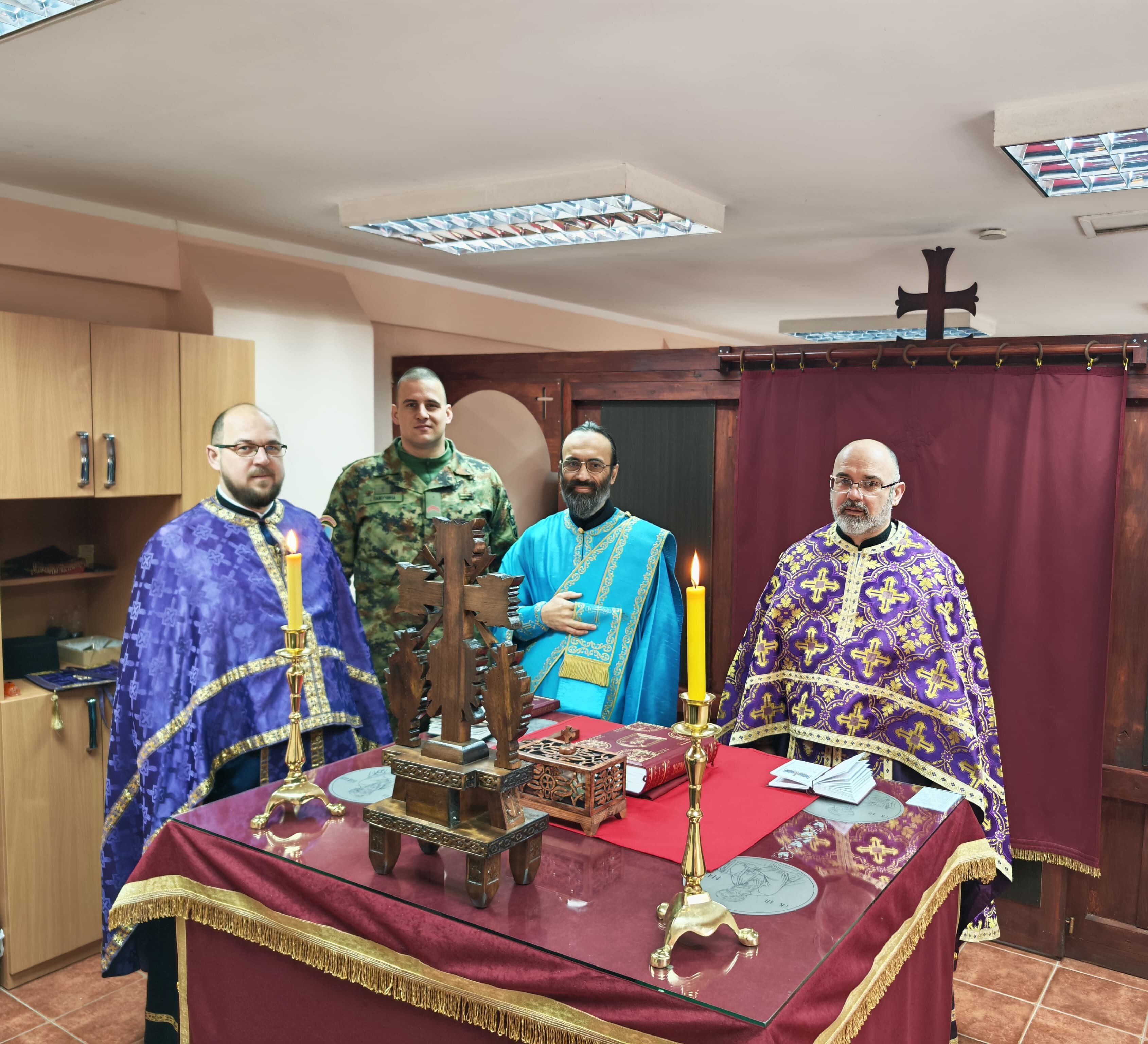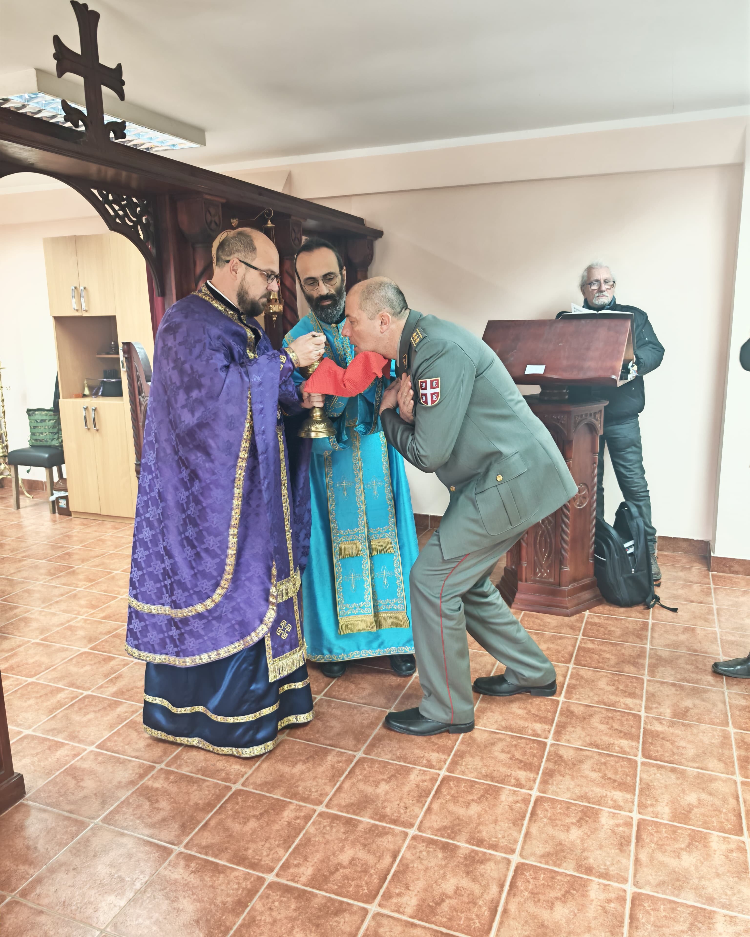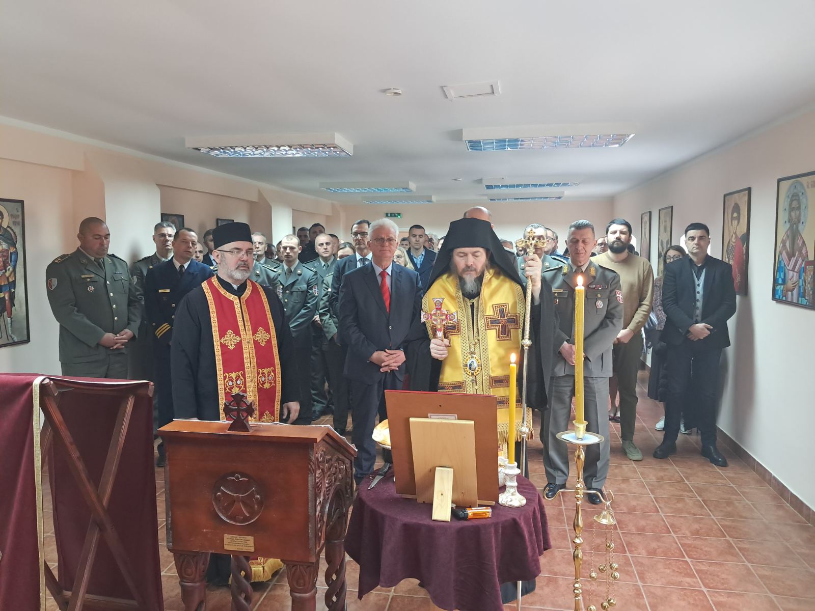 - Доказ тог преображаја смо ми данас овде. Док су можда наши оци и ђедови бацали се дрвљем и камењем на цркву, ми данас стојимо смерно у храму посвећеном Владици Николају у овој касарни. Стојимо смерно пред Господом, пред олтаром и обнављамо своју славу. Ми, који смо старешине, који носимо ове чинове, смо пример млађима од нас- указао је главни војни свештеник на одговорност коју носи служба у Војсци Србије, а коју данас достојно носе бројне старешине, док им свештеници својим молитвама пружају подршку.