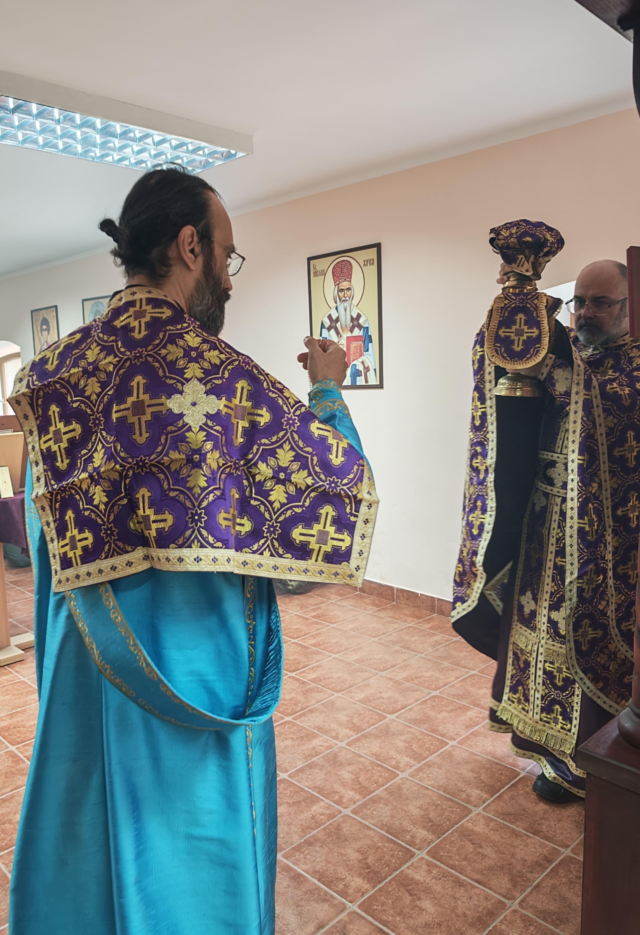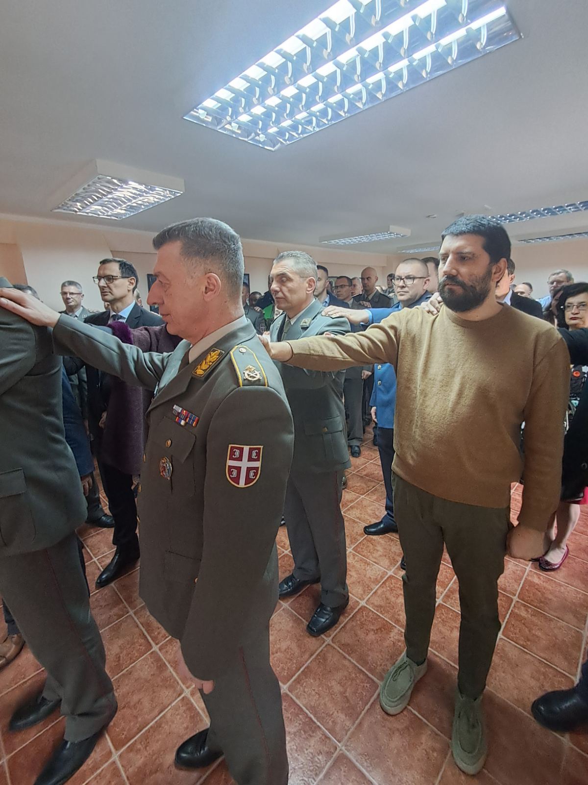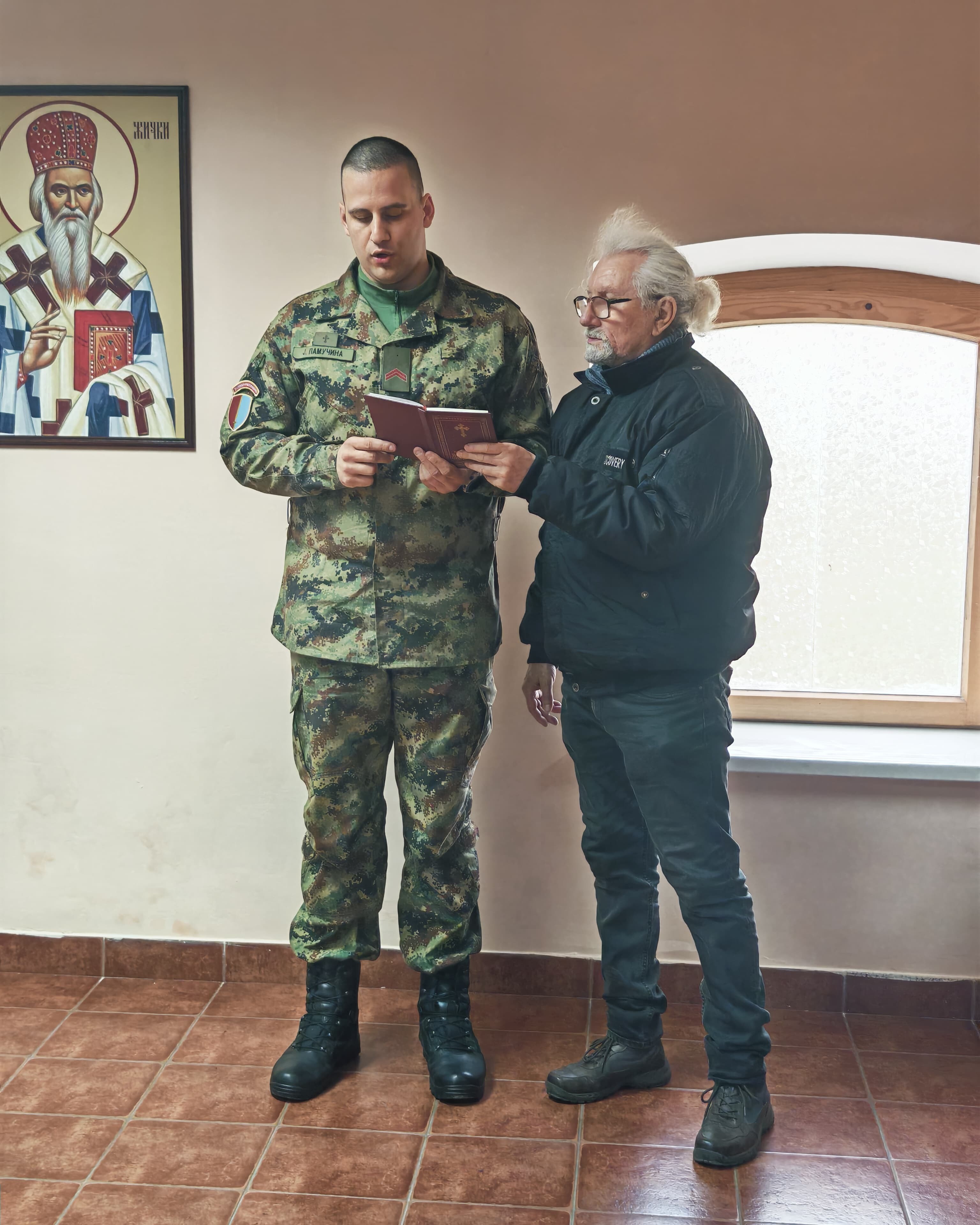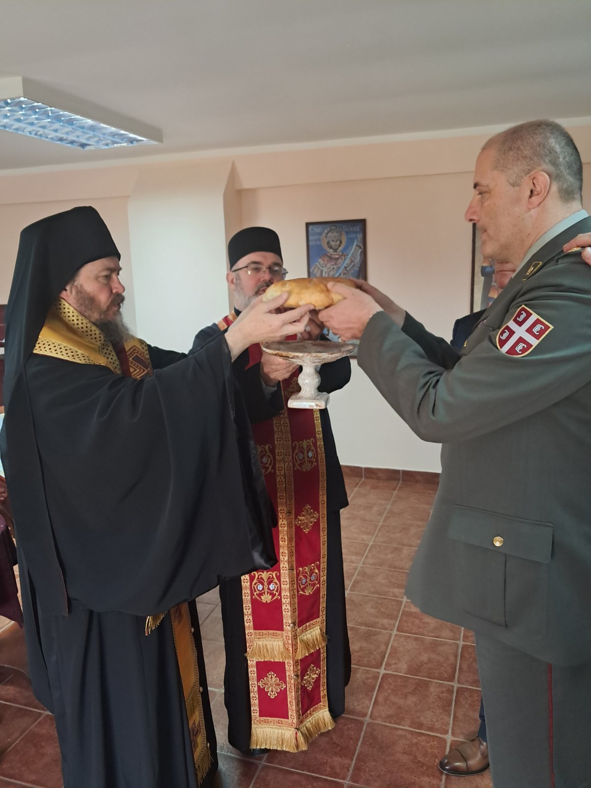 - Доказ тог преображаја смо ми данас овде. Док су можда наши оци и ђедови бацали се дрвљем и камењем на цркву, ми данас стојимо смерно у храму посвећеном Владици Николају у овој касарни. Стојимо смерно пред Господом, пред олтаром и обнављамо своју славу. Ми, који смо старешине, који носимо ове чинове, смо пример млађима од нас- указао је главни војни свештеник на одговорност коју носи служба у Војсци Србије, а коју данас достојно носе бројне старешине, док им свештеници својим молитвама пружају подршку.